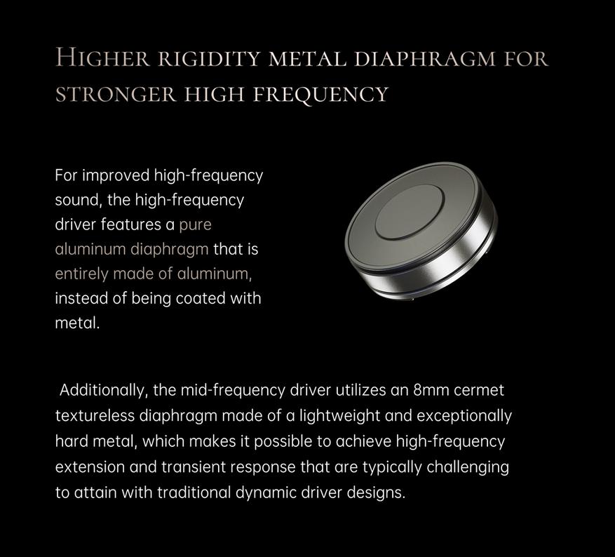 - Конфигурация драйверов: Три активных динамических драйвера + один пассивный (общая площадь диафрагмы 193 квадратных миллиметра)