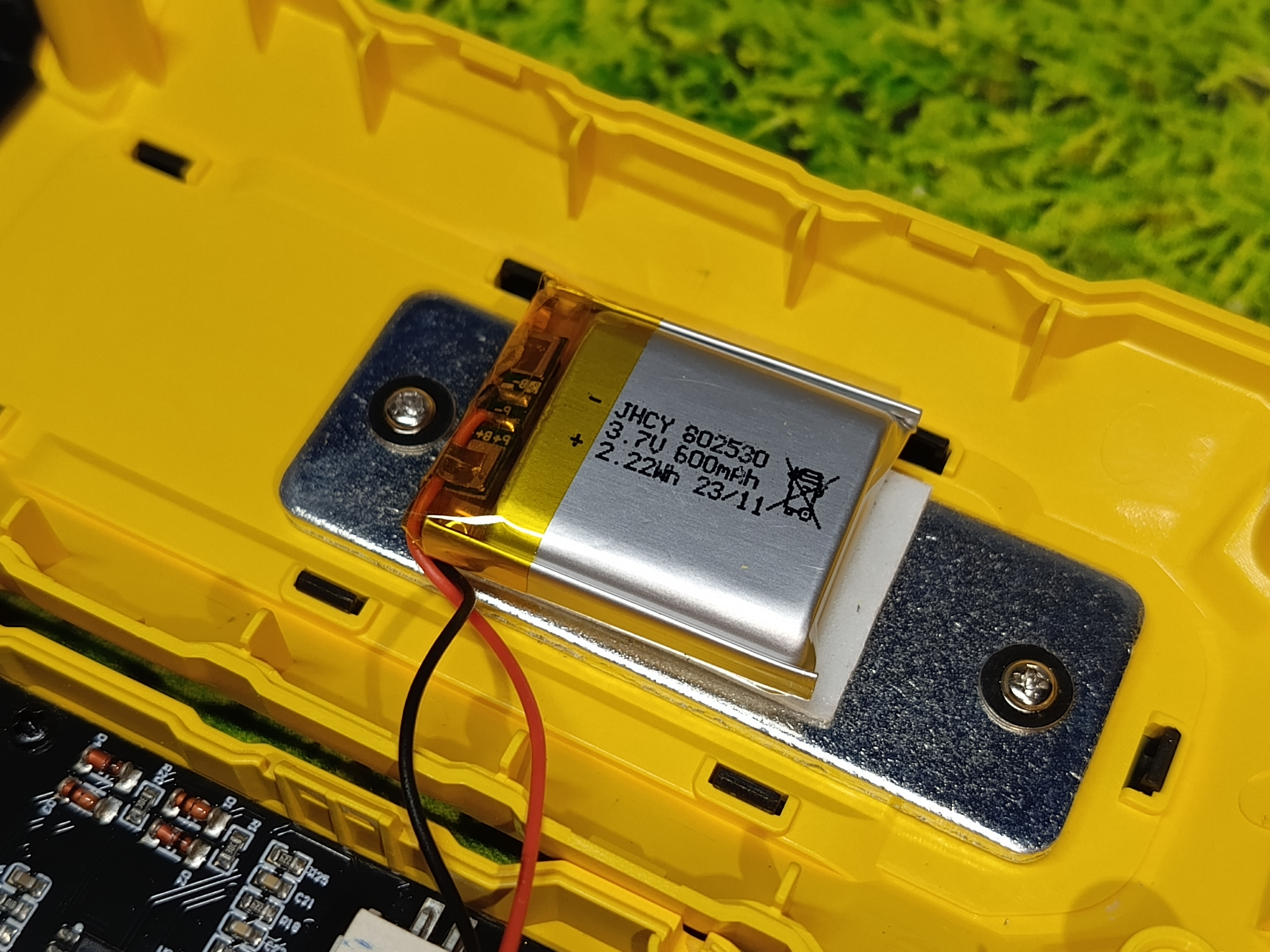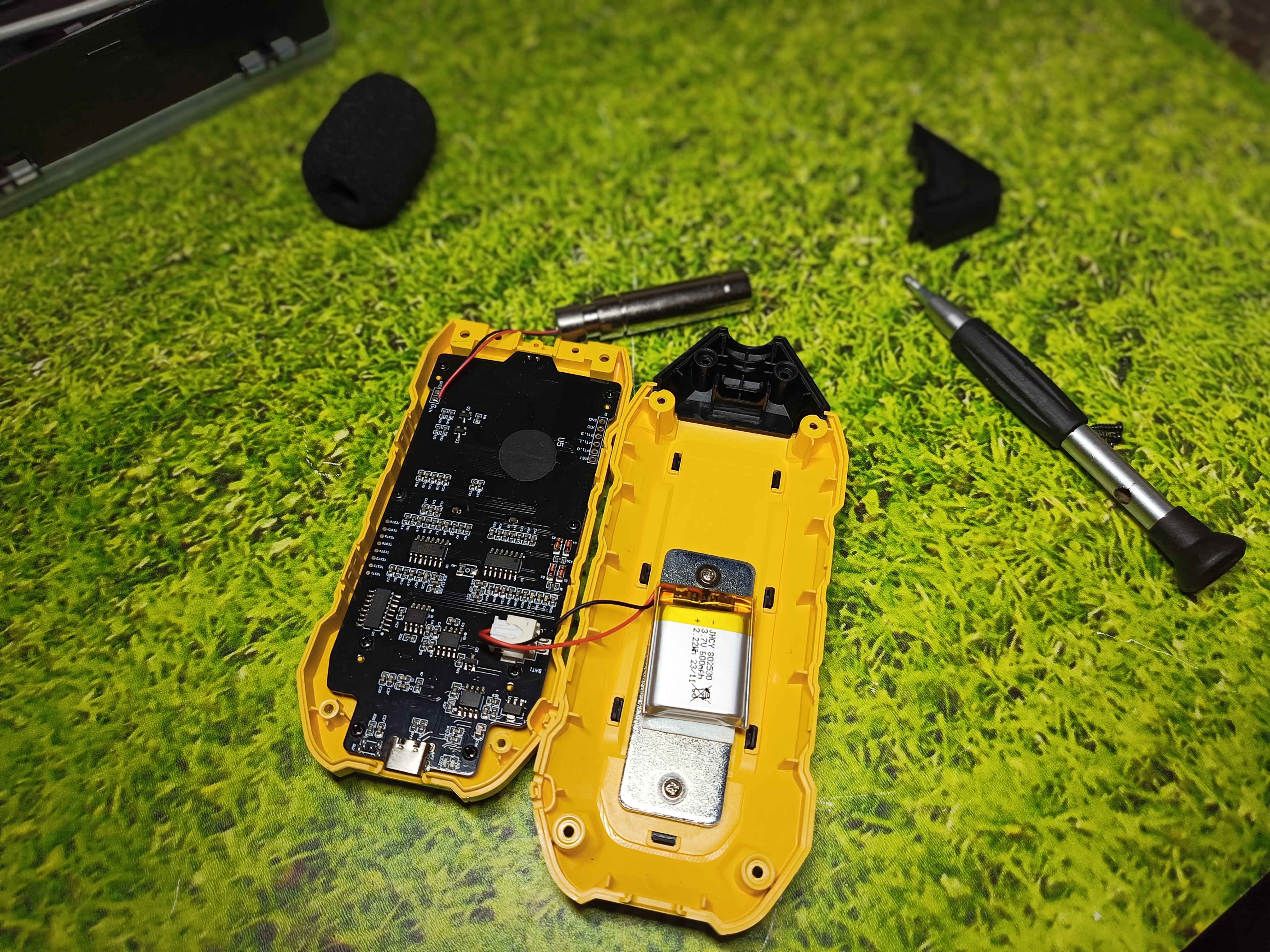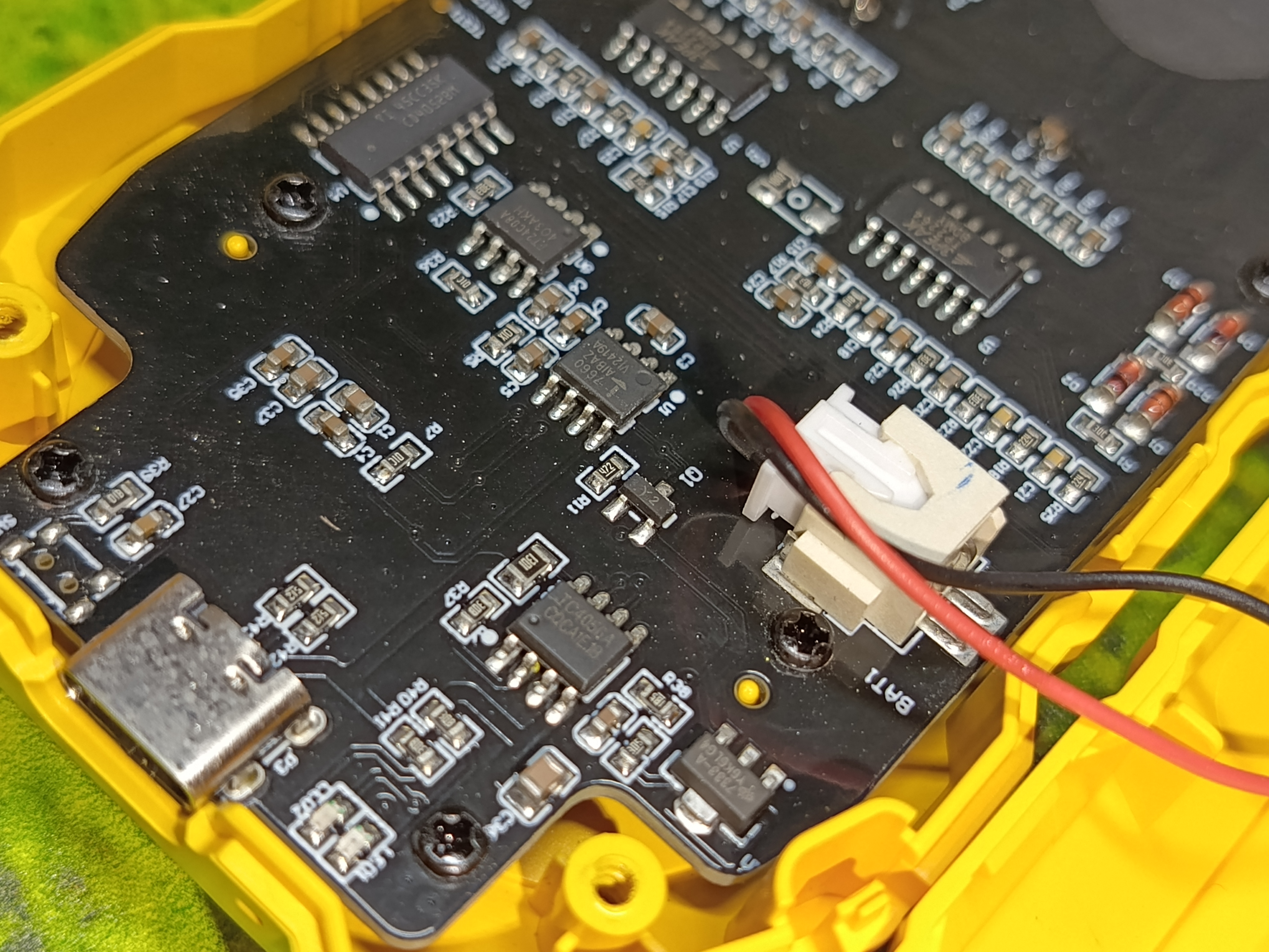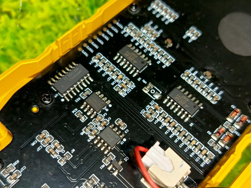 Устройство весит 200 грамм, но часть веса дополняется утяжелительной пластиной под аккумулятором. Вероятней всего, она является также радиатором для АКБ. В основе платы лежит микросхема TP2264-SR.