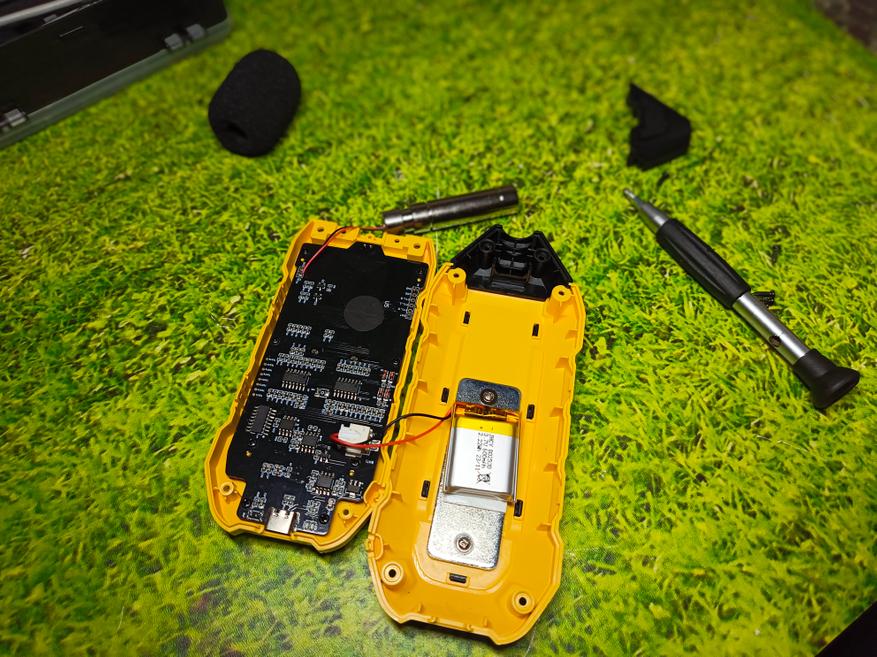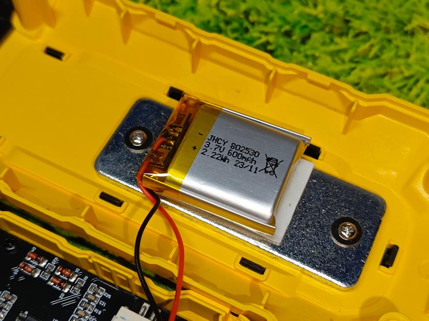 Корпус прибора состоит из двух половин, которые стянуты винтами под крестообразную отвертку. Открыв его, в первую очередь обращаем внимание на тот факт, что внутри полно свободного места и корпус можно было сделать немного поменьше. В целом это не минус, так как для кого будет мало аккумулятора с емкостью 600 мАч, то можно будет самостоятельно заменить на более емкий АКБ.