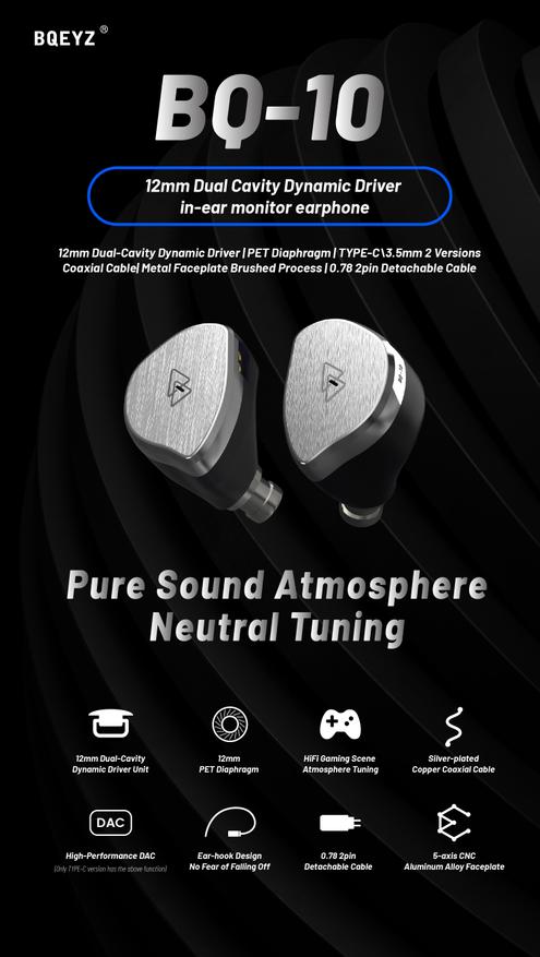 BQEYZ BQ10 — это самые доступные из наушников в модельном ряду BQEYZ, которые обладают теплым и комфортным звучанием с приличными низами.