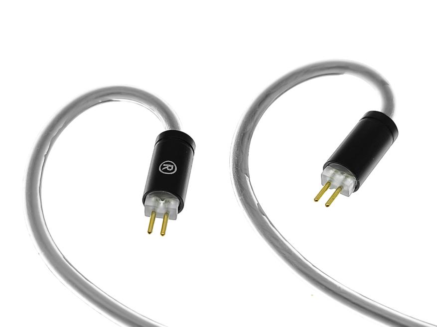 Кабель медный посеребренный, двухжильный, в прозрачной изоляции, обычной толщины и средней жёсткости. Фурнитура металлическая, лёгкая, черного цвета. Слайдер для стягивания проводов отсутствует. Для подключения кабеля к наушникам используются стандартные двухпиновые разъёмы. Штекер прямой, 3.5 миллиметровый.