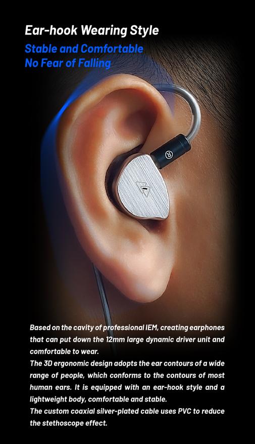 Размер BQEYZ BQ-10 немного больше среднего. Вес 4.3 g. Диаметр звуководов 5.8 mm. Эргономика хорошая. Наушники с ушей не выпадают и при длительном ношении не возникает неприятных ощущений. Я использую BQEYZ BQ-10 с силиконовыми насадками SpinFit CP100. Они мне понравились больше, чем еомплектные. Уровень звукоизоляции у наушников средний.