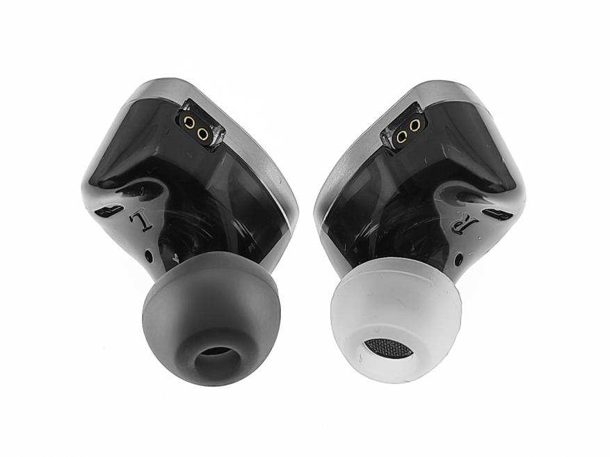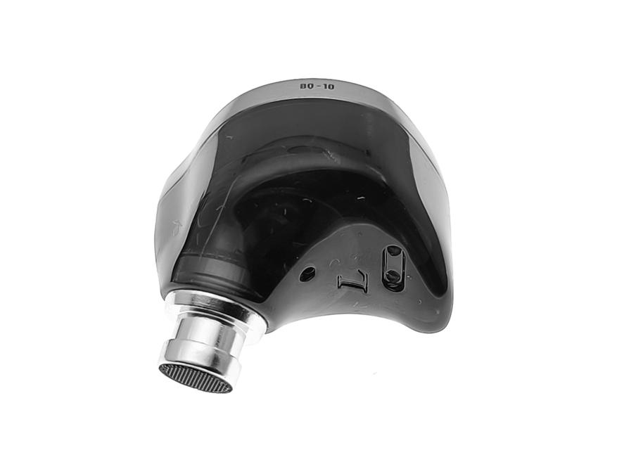 Изготовлены BQEYZ BQ-10 из акрила и алюминия: основная часть корпусов полимерная и частично прозрачная, а фейсплейты и звуководы металлические. Звуководы прикрыты защитными металлическими сетками черного цвета. Со стороны звуководов на наушниках находятся компенсационные отверстия и тисненные буквенные маркировки каналов. Фейсплейты с гладким ободом и шлифованной основной частью, которую украшает логотип в виде сдвоенного треугольника. Качество сборки не вызывает каких-либо нареканий.