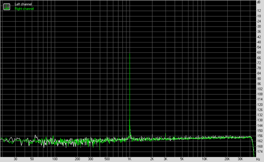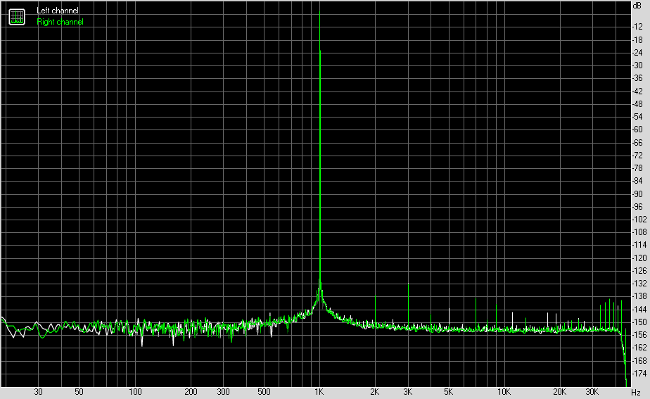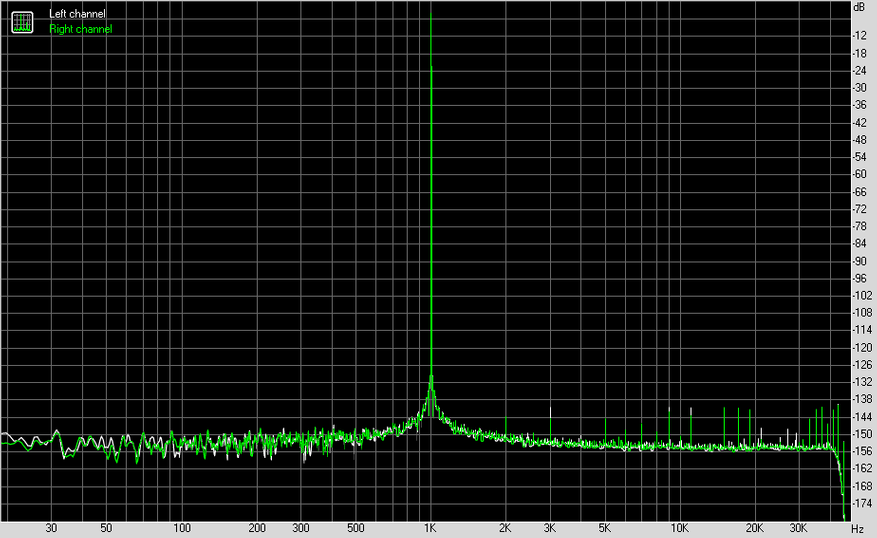 Измерения я проводил в 24 бита 96 кГц с каждого из выходов на АЦП E1DA Cosmos. В результате получил довольно схожие результаты, за исключением, конечно, взаимопроникновения каналов.