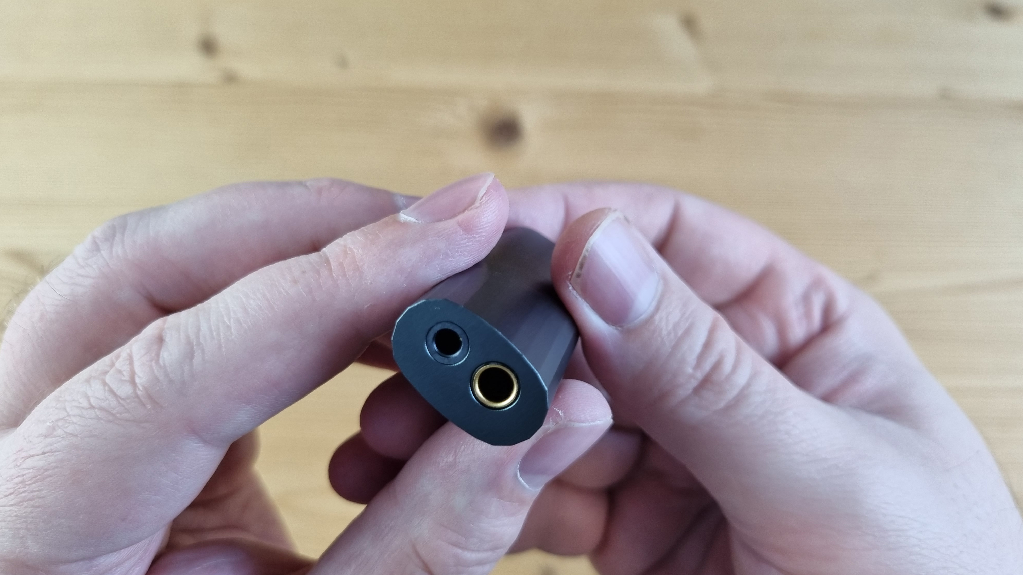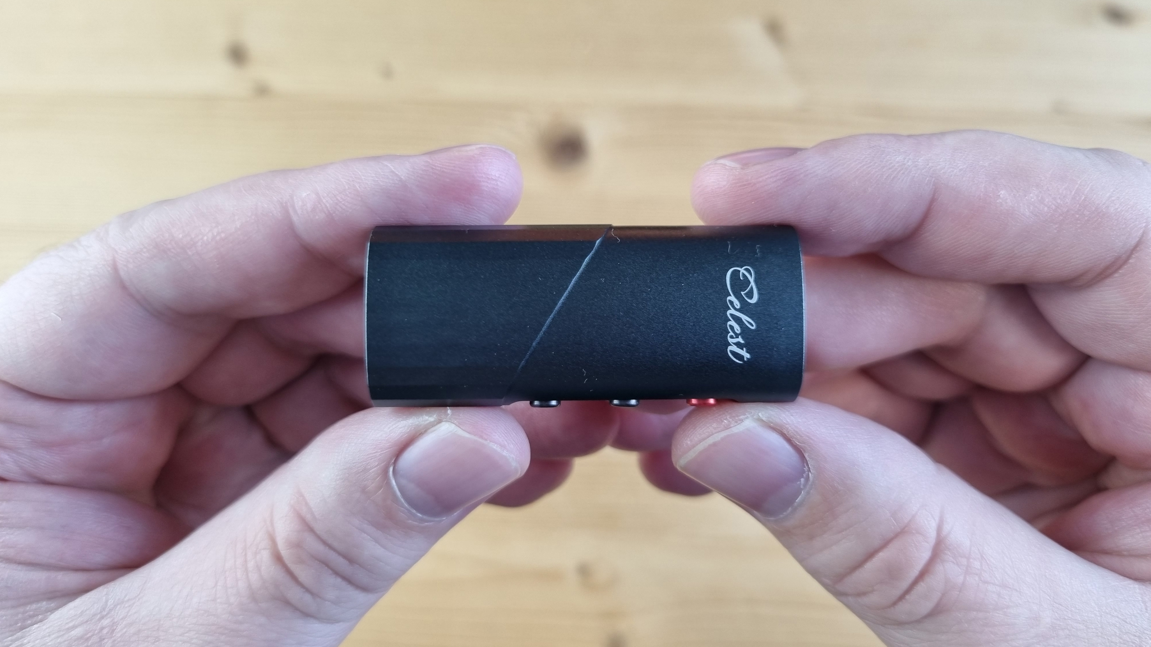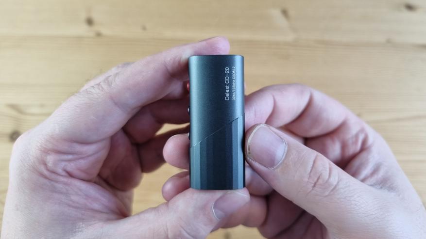 Корпус у Celest CD-20 металлический, с интересными такими скосами, тремя кнопками управления, Type C входом и выходами сразу на 3.5 и 4.4 мм джек.