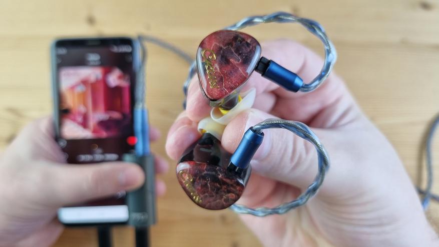 Из железа мы знаем о установленном в него чипе ESS ES9039Q2M и о выходной мощности в 250 мВт для 3.5 мм и 480 мВт на 32 Ома нагрузки для балансного выхода. Чего за глаза хватает для всего внутриканального и большей части тугих полноразмерных наушников.