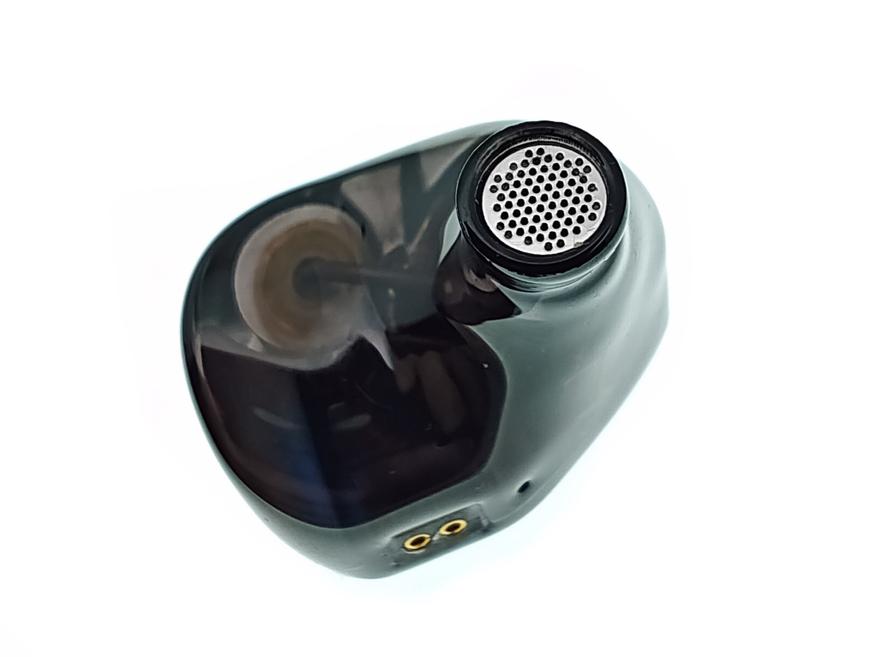 Корпуса наушников изготовлены из напечатанной на 3D принтере частично прозрачной смолы. На рендерах производителя основным цветом является черный. Но если посмотреть на него вживую, то он уходит в коричневый. Корпуса наушников представляют собою цельный элемент, без швов. Звуководи немножко наклонены вверх и почти не имеют отклонения в сторону. На звуководах предусмотрен бортик для удержания амбушюр. Защитная сетка выполнена в виде перфорированного стального диска.
