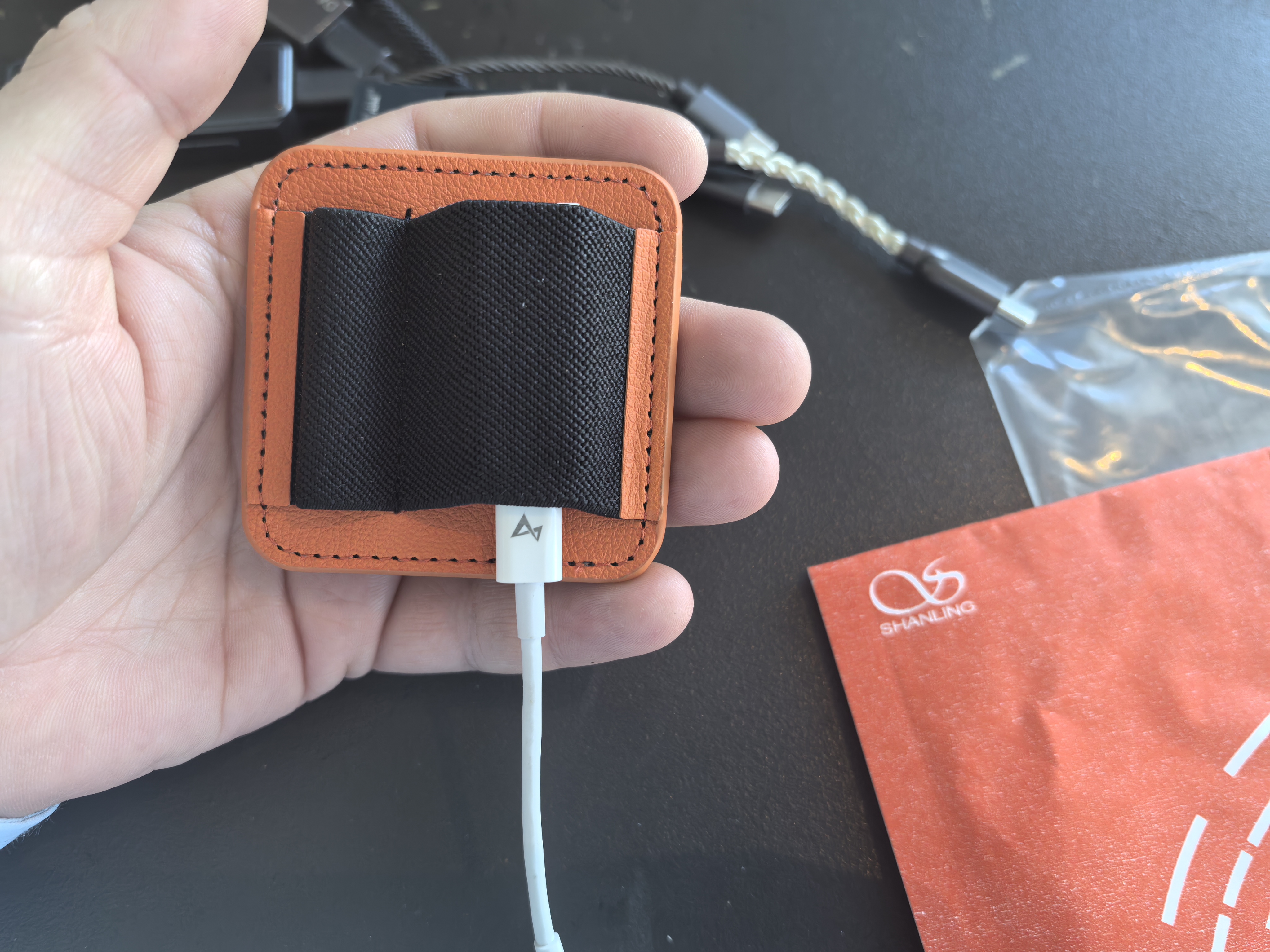 Упаковка, держатель, кожух или ещё как-то по-другому можно назвать товар от Shanling для хранения ЦАП на задних стенках смартфонов — это интересный аксессуар. Он маленький, не занимает много места, когда не используется, не мешает и создаёт порядок в проводах. Самое главное — тяжёлый по меркам наушников усилитель не болтается из стороны в сторону при прослушивании музыки. Раньше я держал DAC и телефон в одной руке, что, конечно, было не очень удобно, тем более шевеления иногда приводили к потере сигнала. Маленький аксессуар от Shanling прекрасно вписался к использованию, хранению и переносу преобразователя с телефоном. Можно ещё добавить: прослушивание музыки стало удобнее.