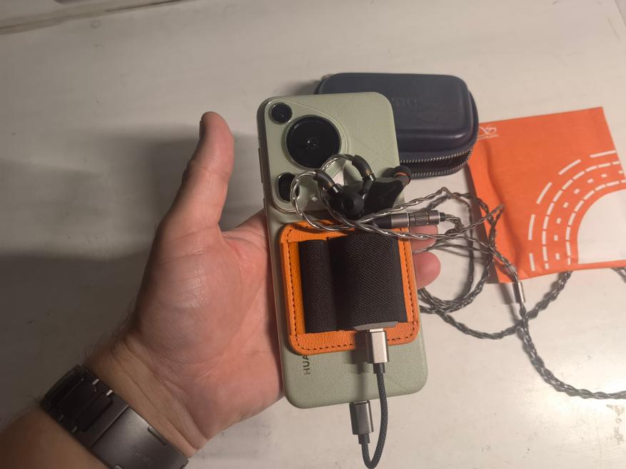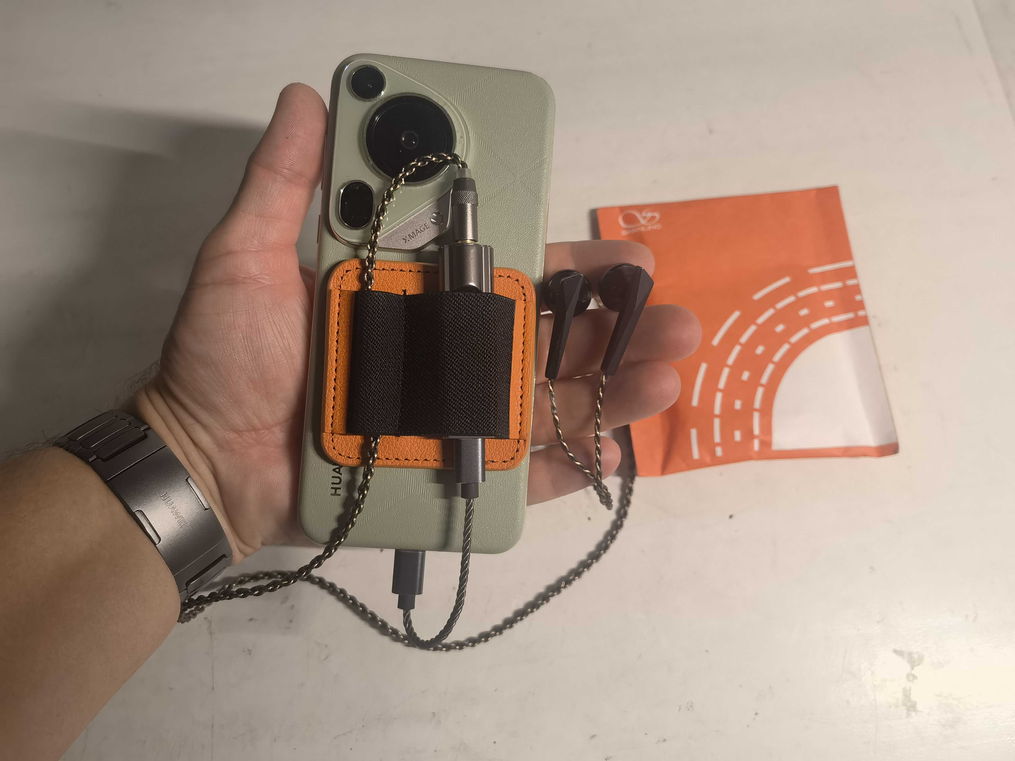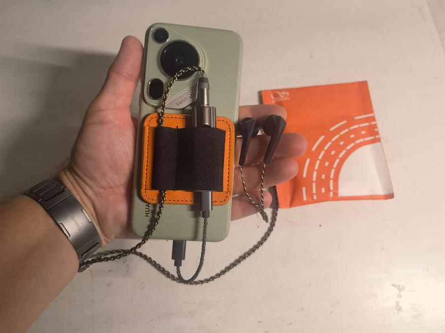 Мне нравится, что ЦАП теперь всегда со мной. Он увеличивает часть корпуса, но это не такая большая проблема. Главное, он не выпадет из резинки, которая держит его плотно.