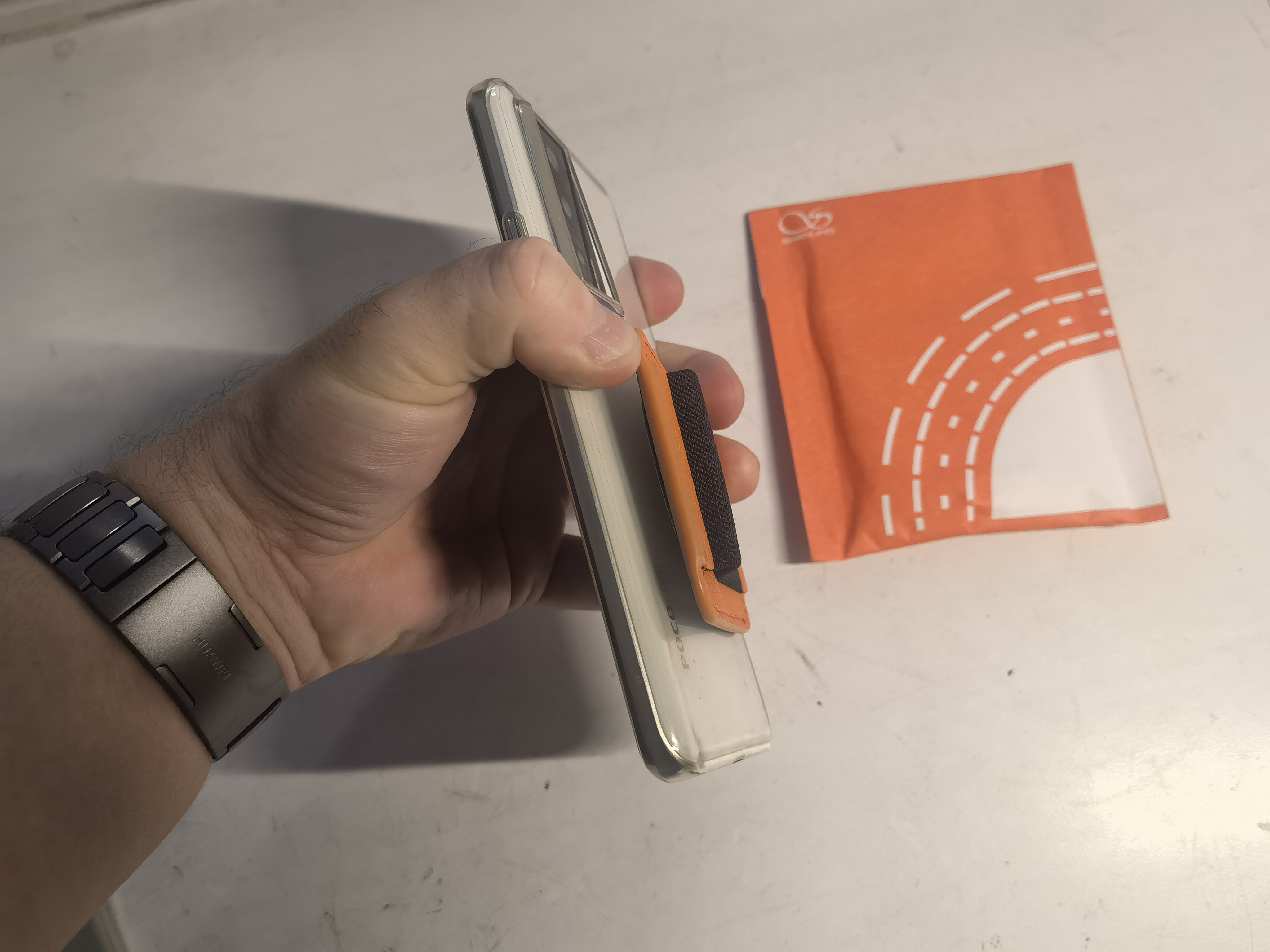 Скотч держит крепко как на поверхности телефона, так и на чехле, но есть исключения. На искусственной коже смартфона HUAWEI Pura 70 Ultra — отлично; на комплектном силиконовом чехле, к примеру, смартфона Poco F5 Pro — хорошо, так как при снятии кожуха для ЦАПа снимается и скотч; на резиновой части защищённого чехла смартфона HUAWEI P50 Pro скотч не держится совсем. В смартфонах, поддерживающих магнитную зарядку, как понимаю, скотч использовать не надо.