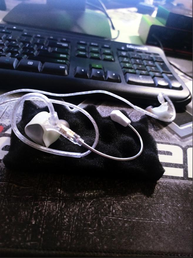 Основная фишка этих наушников — возможность подключить внешний микрофон. Такую гарнитуру можем задействовать в различных играх, мессенджерах, голосовых чатах. То есть, с технической точки зрения подобная гарнитура отличается от игровой лишь своим внешним видом, да и, пожалуй, габаритами. Длина ножки микрофона — 11 сантиметров. Он очень лёгкий, вопреки моим ожиданиям, не влияет на расположение наушника в ухе. Проще говоря — под воздействием своего веса он не смещает корпус наушника, закрепленного в ушном канале.