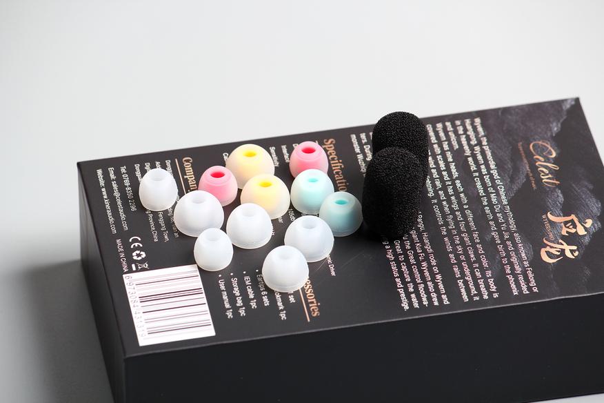 В комплект поставки вошли два набора силиконовых амбушюр. Полностью прозрачные насадки слегка подчеркивают диапазон высоких частот (от 10 до 14 килогерц). Есть два поролоновых фильтра, позволяющих защитить микрофон от ветра.