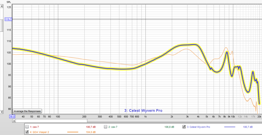 Звук понравился. К плюсам отнесу возможности динамика в правой части диапазона (хоть как-то проработаны ультравысокие частоты). Более дорогая модель «Qoa Vesper 2», со своим излучателем «Knowles 32873», выдаст меньше информации на отрезке от 10 до 20 килогерц. В остальном же обозреваемая модель, к сожалению, уступает. Видим больший акцент на низких частотах, более заметный провал на средних, подсвеченную верхнюю серединку… В общем звучание получилось более басовитым, но в то же время и более ярким и резким.