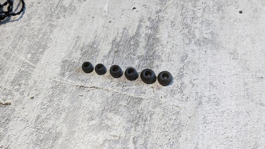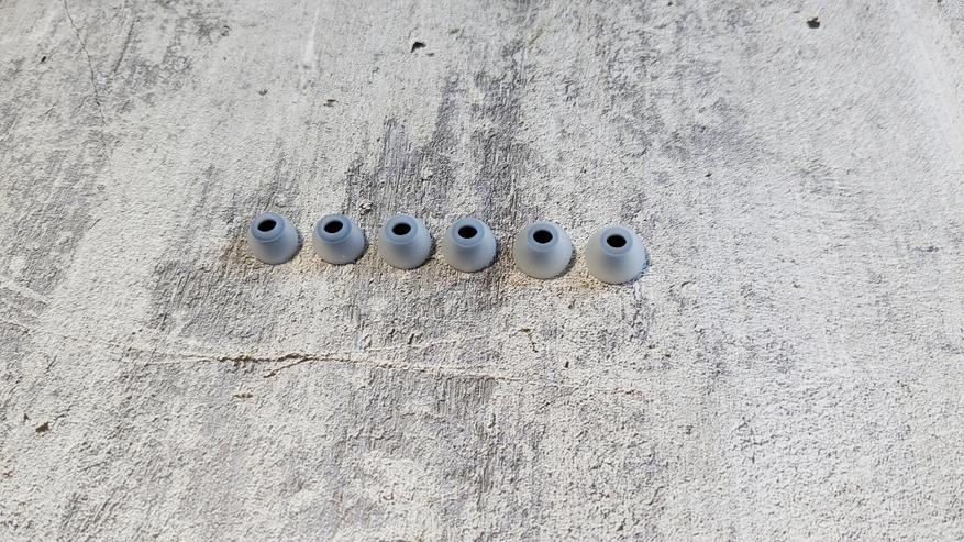 Амбушюры представлены двумя комплектами. Черные с большим отверстием мне не подошли — они плохо держат свою форму. А вот второй комплект прозрачных насадок с тёмным стержнем — впечатлил. Стенки у них гораздо плотнее, за счёт этого момента и получим улучшенную фиксацию и звукоизоляцию.