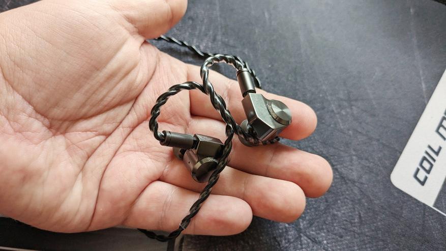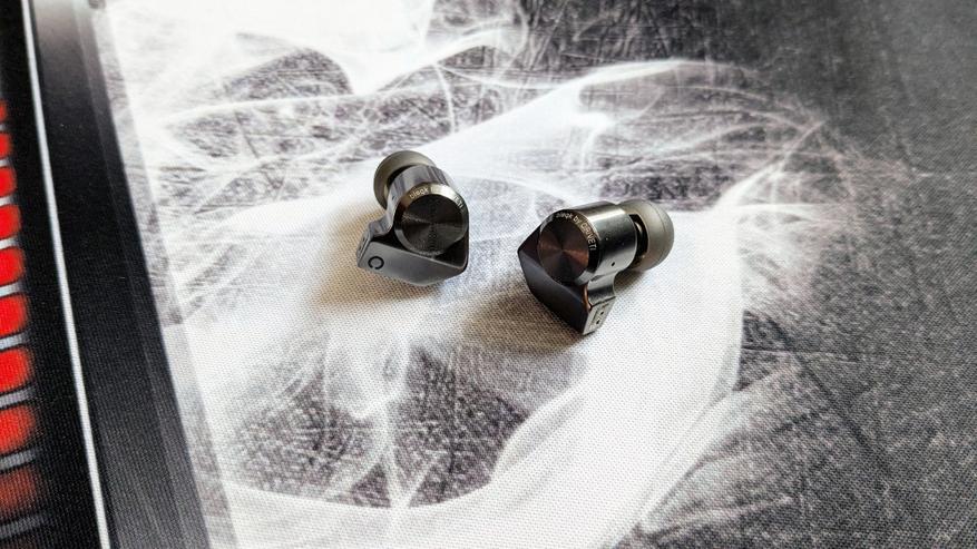 Корпуса изготовлены из алюминиевого сплава. Дизайн — привет из прошлого десятилетия. Подобными корпусами хвастались ребята из Campfire Audio и Tin HiFi. Что уж говорить о различных подпольных наушниках с похожей внешностью — тысячи их. Минус для меня тут только один — наушники очень скользкие, могут выпадать из рук. Сделано всё по уму — есть разметка левого и правого канала, на месте компенсационные отверстия. Звуководы правильные, с выступающим бортиком, фиксирующим силиконовую насадку. Звукоизоляция с подобранными и подходящими амбушюрами — классная.