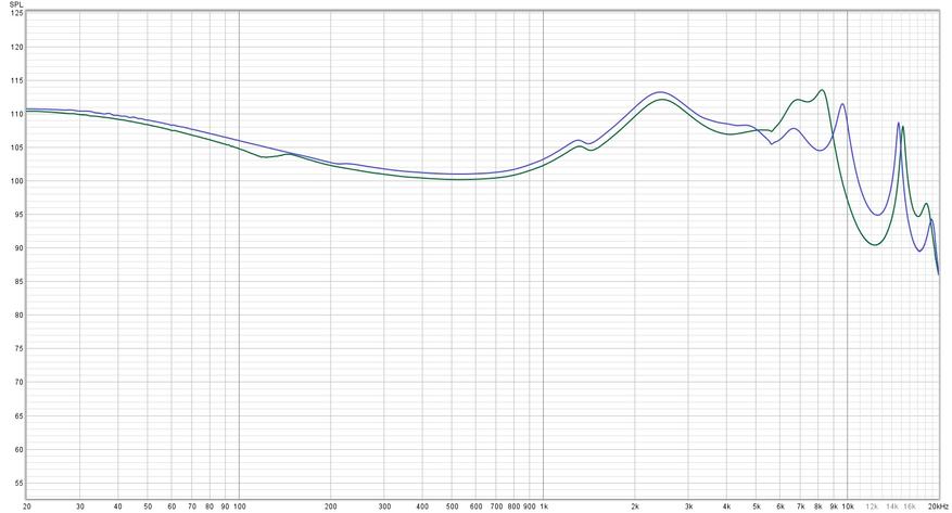 Повлиять на ситуацию помогли сторонние амбушюры компании Dunu (синяя кривая). Добился интересного результата — приглушил пик, а заодно и на 4 децибела подтянул завал.