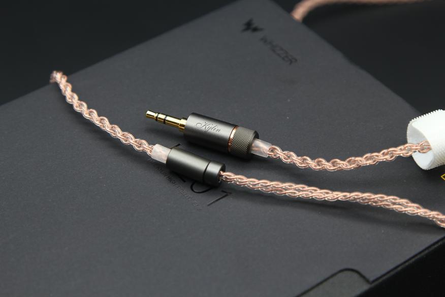 Штекер огромный, на нём присутствует нанесение «kylin», а так же крупная накатка для более удобного извлечения. Чуть выше находится разветвитель с бегунком. Места вывода хорошо защищены силиконовыми вставками.