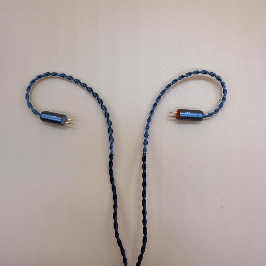 Комплектный кабель это сильная сторона этих IEMов. Сам провод состоит из 2-жильной плетенной оплетки, сделанной из бескислородной меди, покрытой ПВХ материалом, защищающий от внешних повреждений. Кабель экстремальной тонкий и легкий, довольно гибкий и имеет некий эффект памяти. Так же кабель имеет красивую, металлическую фурнитуру с логотипом на ней. Длина кабеля 1.2 метра.