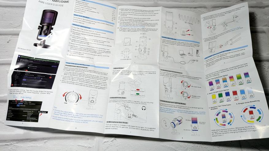 Поставляется AM6 в упаковке из переработанного картона. Некоторым покупателям этот микрофон приехал в разукрашенной коробке с глянцевым нанесением. Упаковка не супер плотная — в моём случае она довольно прилично пострадала в процессе транспортировки. Очень сильно помялся уголок коробки, прихватив за собой инструкцию, расположенную внутри.