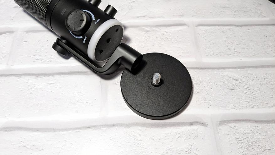 Металлическая подставка нареканий не вызывает — массивная, устойчивая, с прорезиненными ножками. На столе микрофон стоит весьма уверенно.