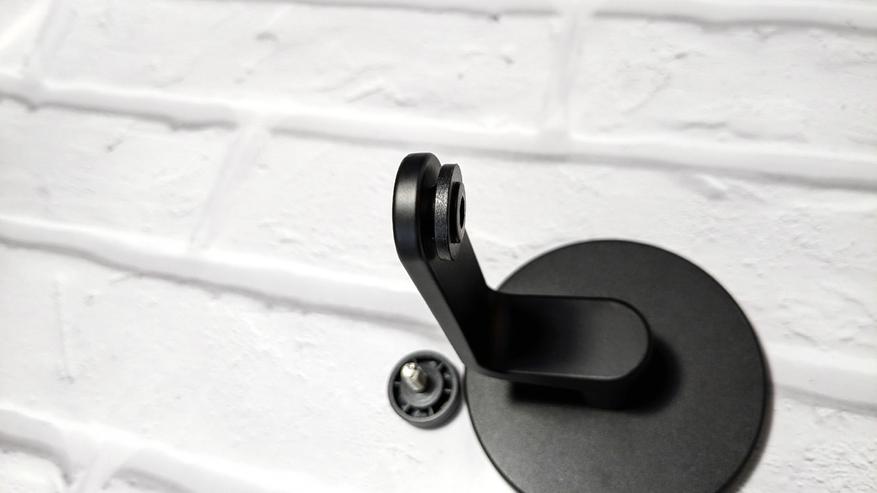 Реализована двойная система крепления. Сама тушка имеет боковую резьбу и крепится к держателю, а уже держатель прикручивается к массивной и круглой металлической подставке. При желании можно убрать подставку и воспользоваться пантографом.