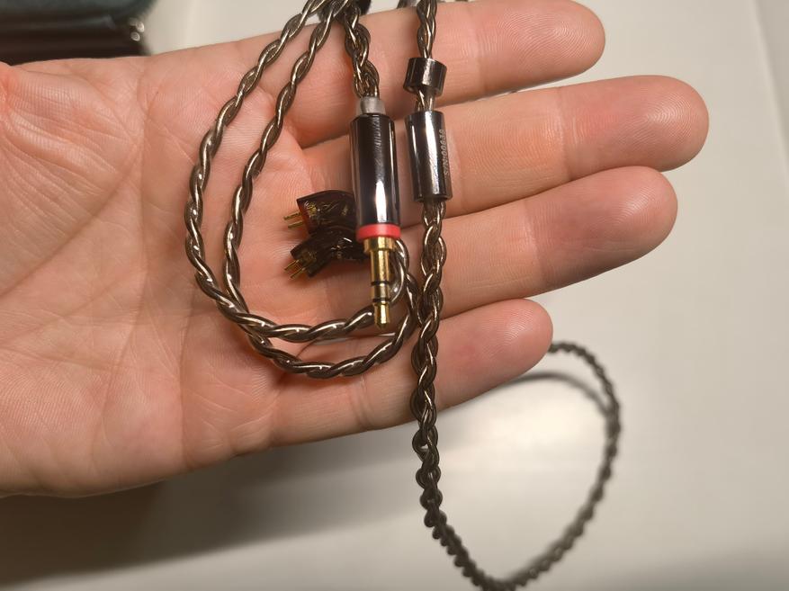 Комплектный кабель заслуживает отдельного внимания. У Dunu на каждом кабеле есть номер, что гарантирует качество изготовления. Кабель - четырехжильный монокристаллический посеребряный высокой очистки литц-структуры. Коннектор несменный, 3,5 мм.