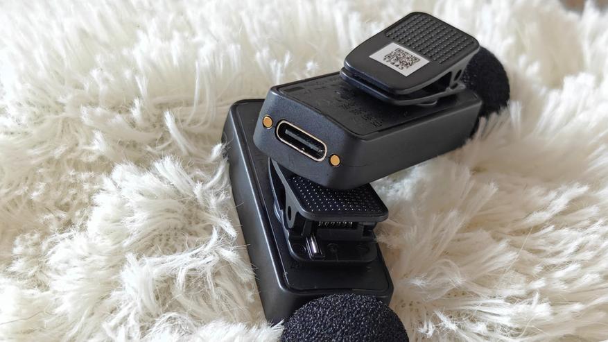 на нижнем торце Type-C разъем для проводной зарядки и контакты для магнитной зарядки. Сверху сам микрофон, прикрытый шапочкой из вспененного шумогасителя.