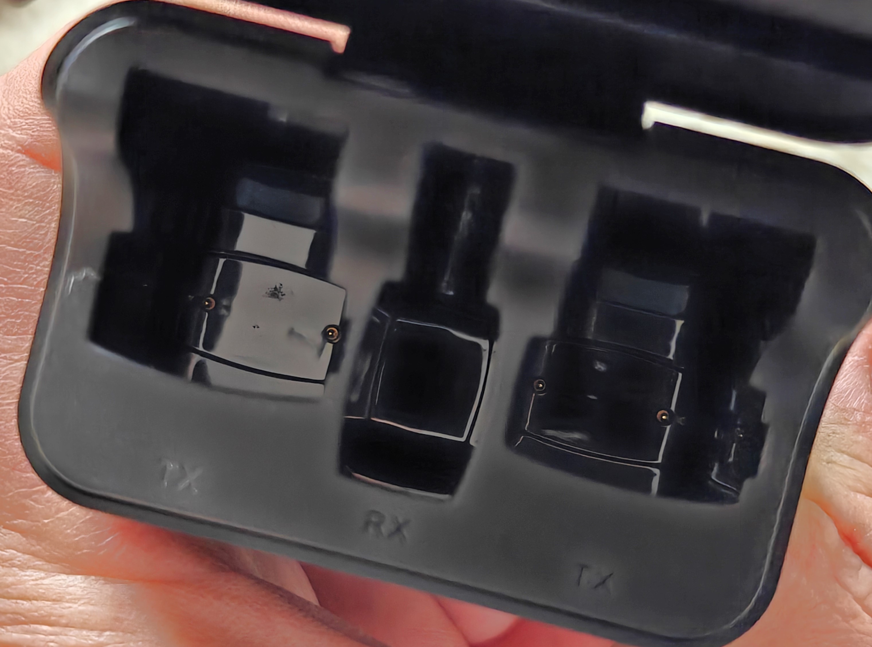 Ресиверы одинаковые, только имеют разницы в торчащих разъемах. Это либо Type-C, либо Lightening интерфейс для установки в смартфон. На одной стороне написано название производителя, с обратной стороны модель. Корпуса ресиверов из черного пластика и выглядят достаточно прочными.