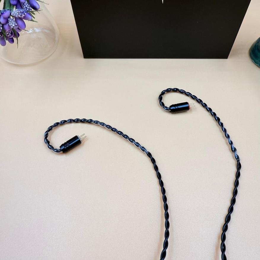 Комплектный кабель здесь такой же, как у дорого модели Quintet или схожей Quartet. Это высококачественный 4-жильный кабель, сделанный из OFC (oxygen-free copper) и покрыт PU материалом для защиты от повреждений. Сам провод тонкий, гибкий, эластичный и легкий. Фурнитура выполнена из метала, придавая проводу более премиальный вид.
