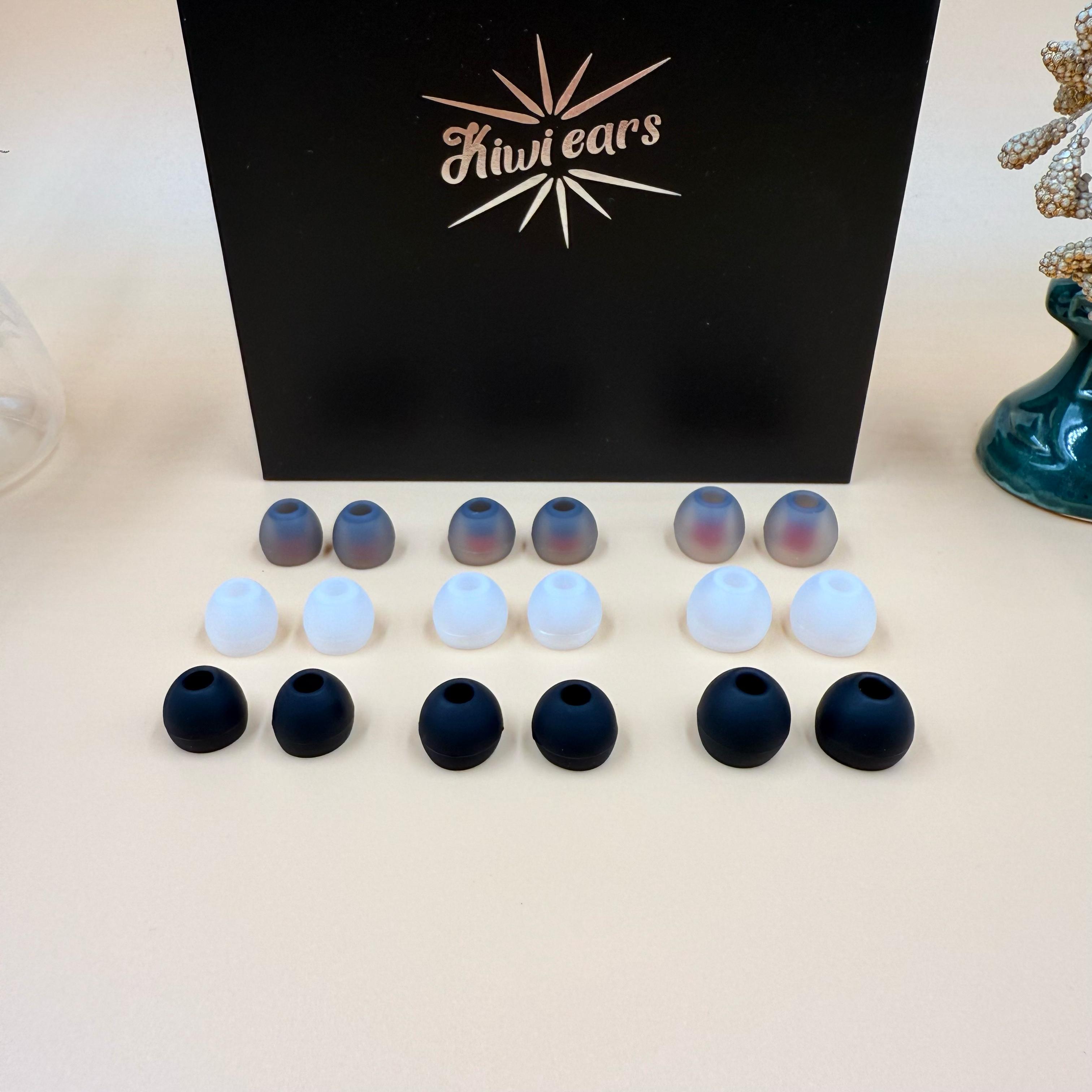 Airoso предлагает огромный выбор амбюшур под ваши нужды и предпочтения. В комплекте находятся 3 пары белых прозрачных амбюшур (S / M / L), 3 пары серых амбюшур с красными сердечниками и стандартным отверстием (S / M / L), а также 2 пары стандартных черных амбюшур (S / M).