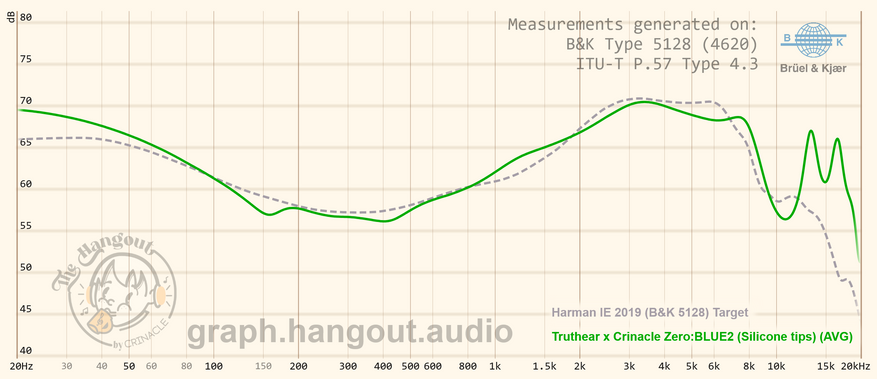 Напомню, что Zero Blue 2 это 2DD IEMы и в плане звучание инженеры стремились максимально приблизиться к кривой Harman 2019. Судя по графику это V-образные IEMы с улучшенным расширением баса, плавным переходом к середине, перенастроенной верхней серединой, и вытянутыми верхними частотами, чтобы ещё больше соответствовать кривой Harman 2019.