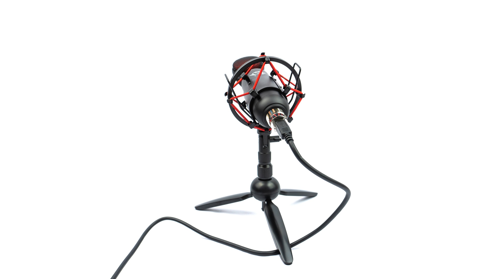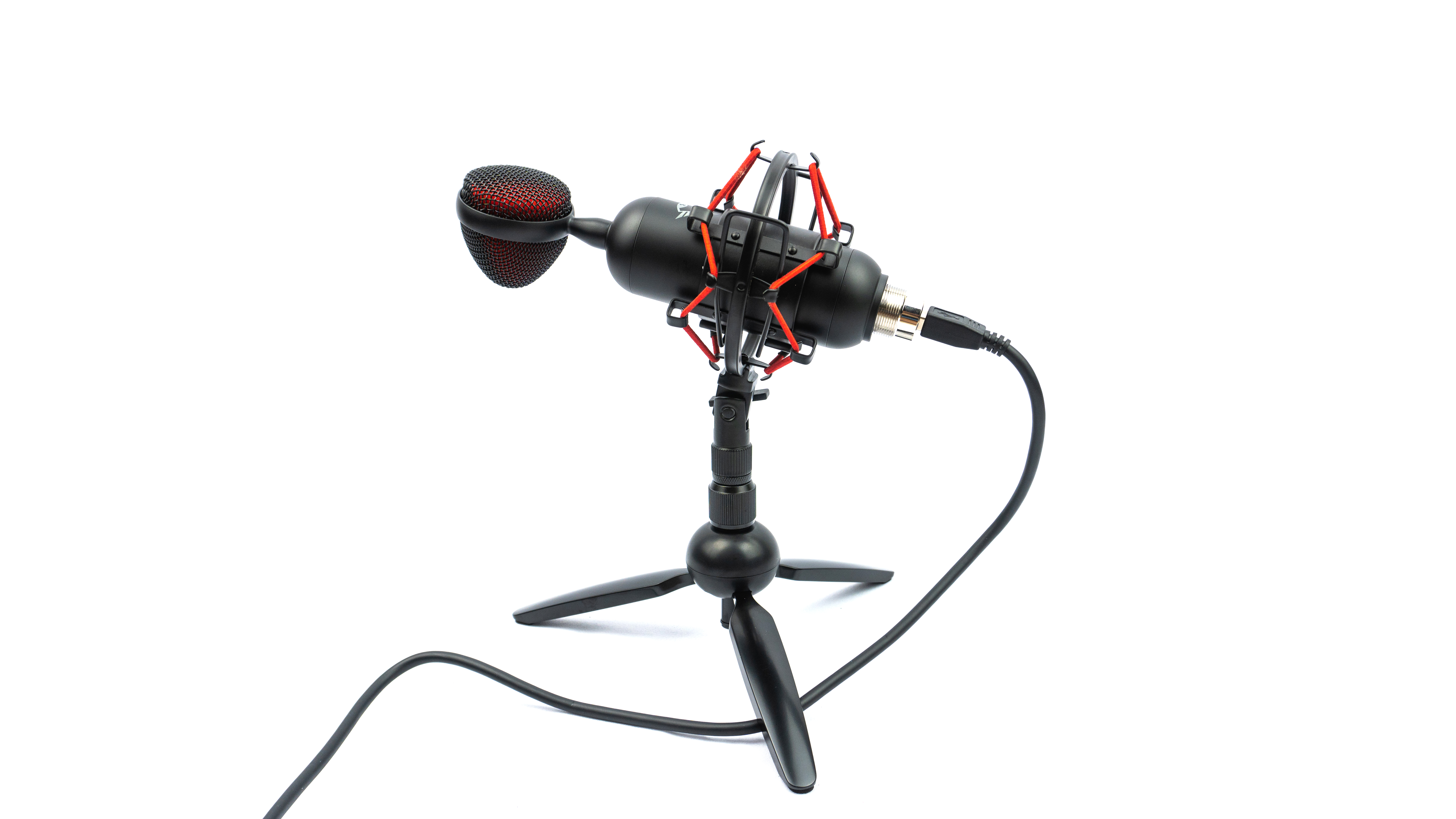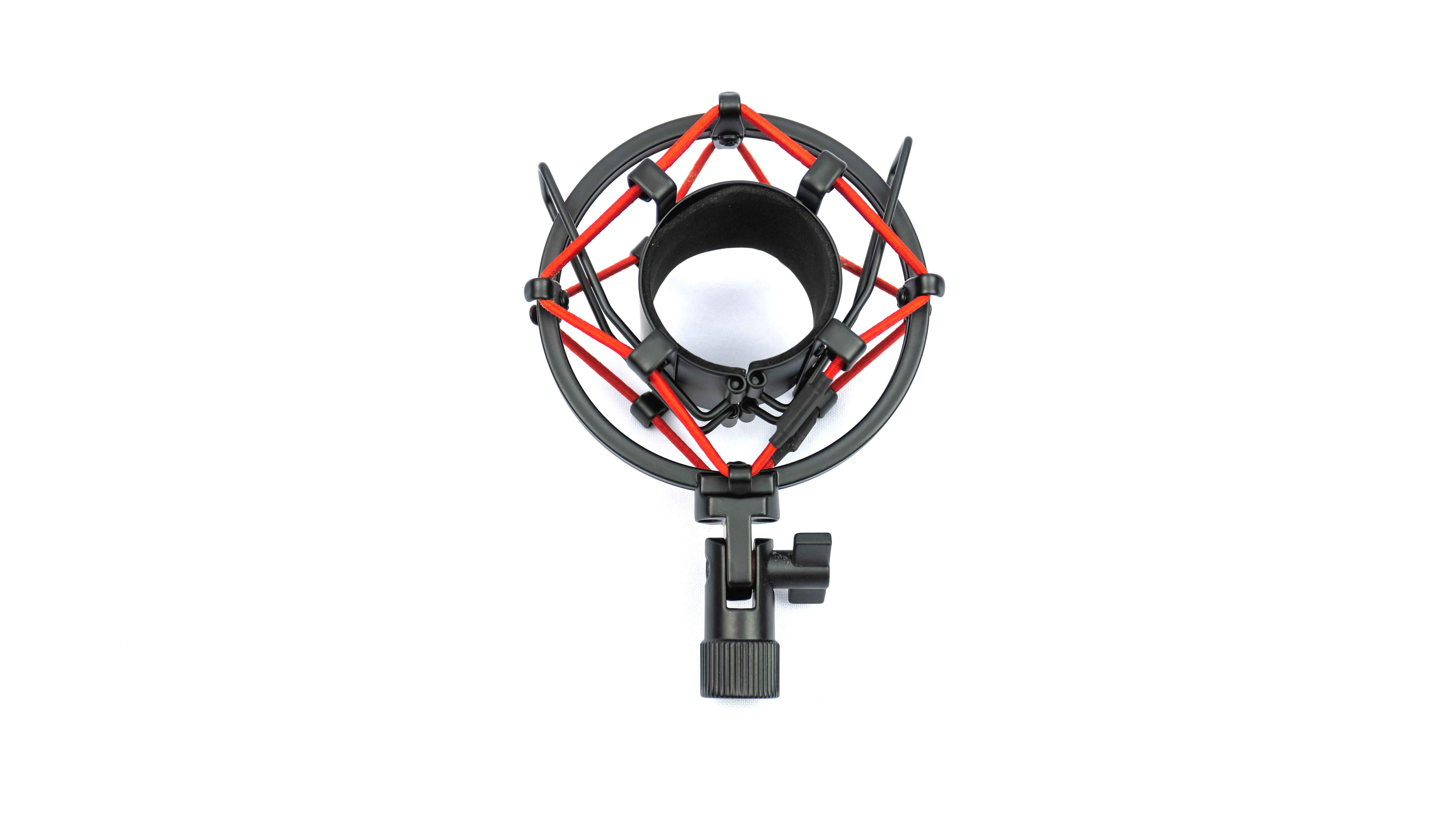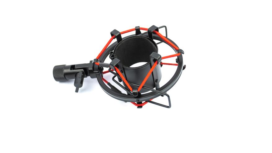 Стиль “паука” черно красный, с черным поролоном внутренней части держателя микрофона, металлическими частями и красными резинками, гасящими вибрации. Подставка и держатель крепятся друг к другу с помощью винтового соединения.