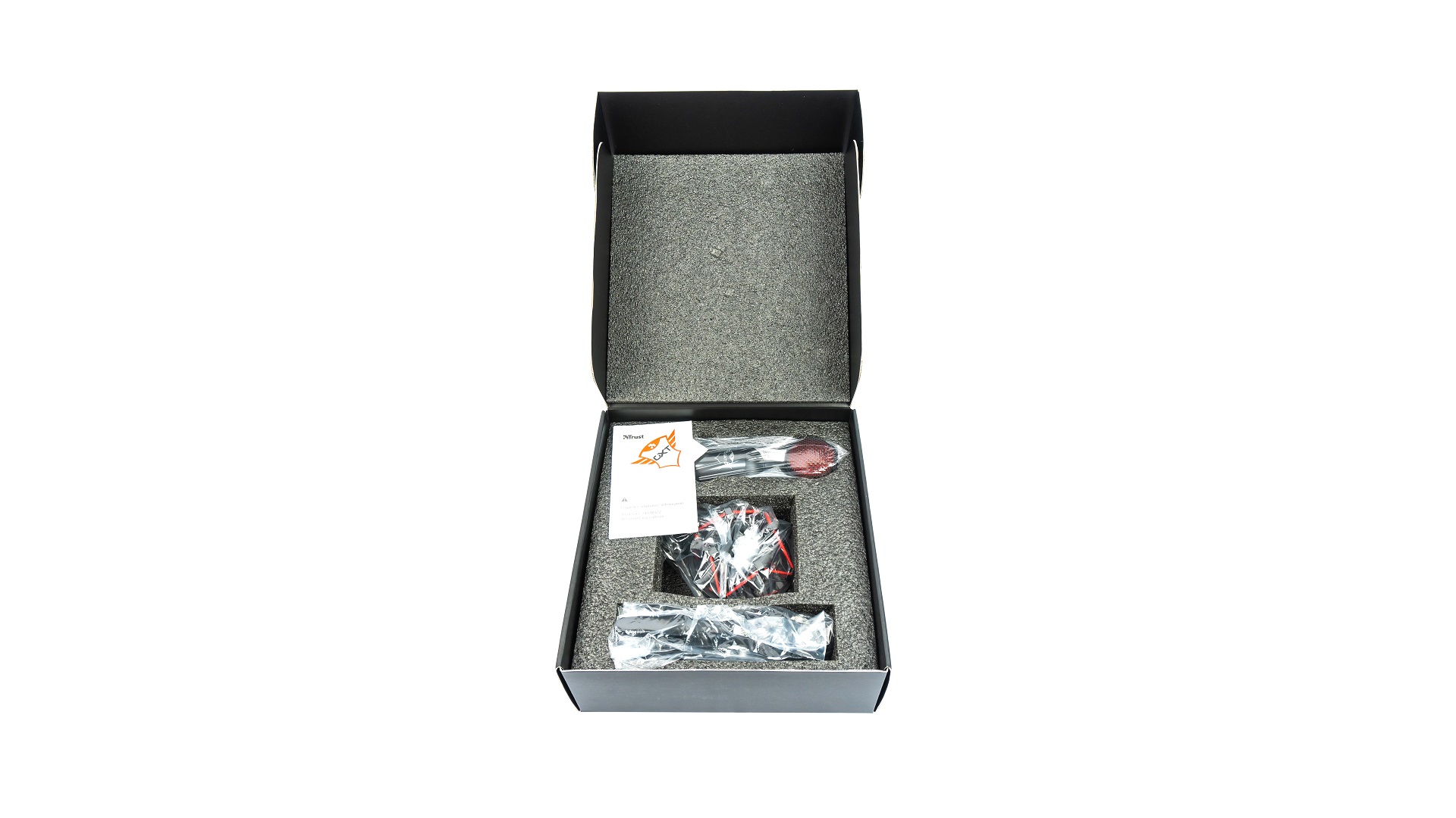 Trust BUZZ входит в раздел игровых устройств Trust под брендом GXT. Выделяется эта линейка черно красными игровыми цветами упаковки и продукта.