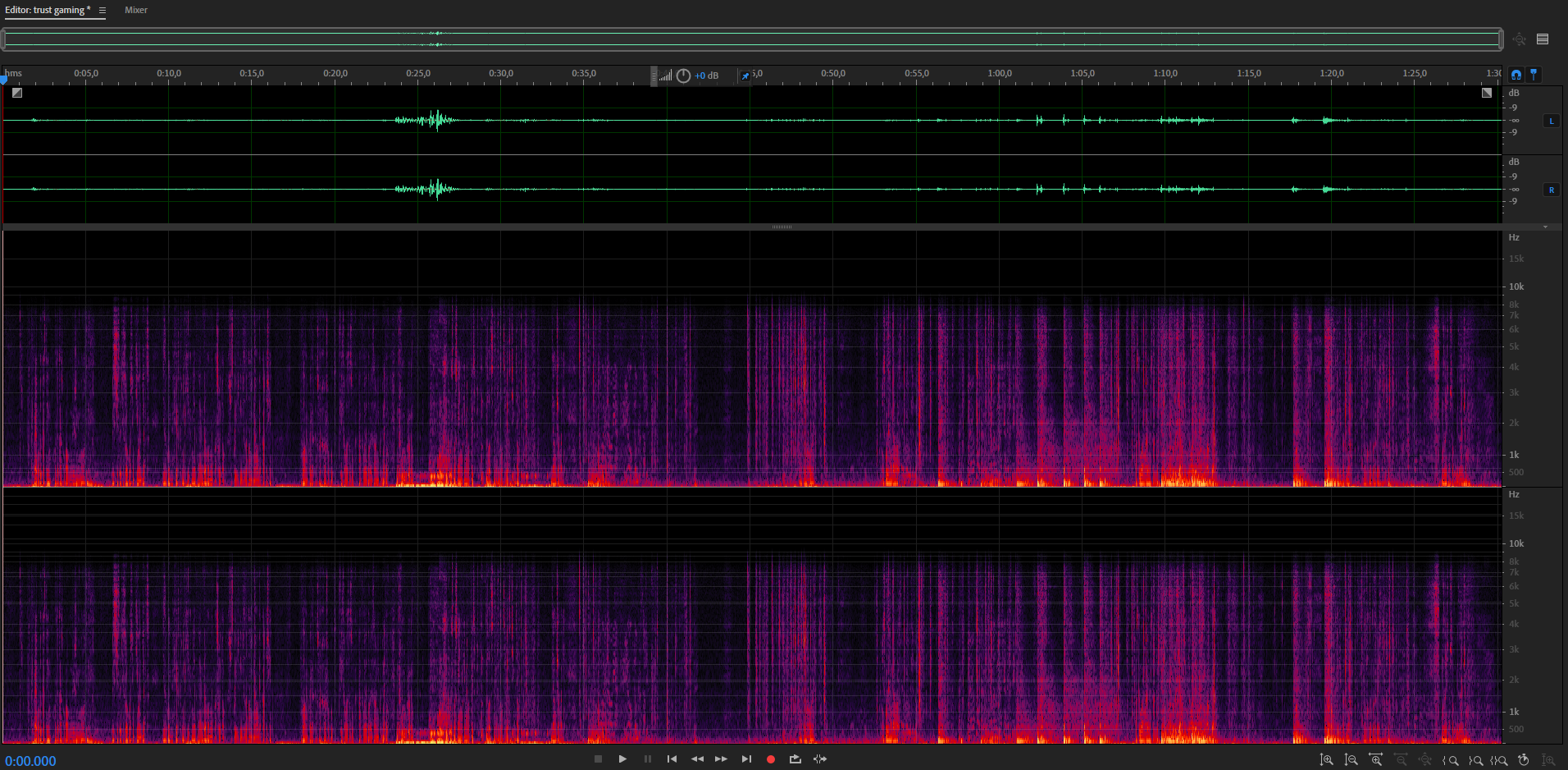 Микрофон постепенно приближался и удалялся при записи одной и той же фразы. Как видно из спектрограммы, в момент, когда уровень звука максимален, Trust BUZZ записывает звук с близкого расстояния и тут появляются шумы. Если записывать со стандартного расстояния, звук довольно тихий.Для оптимального звука необходимо добавить уровень звука в настройках и включить галочки с подавлением фонового шума.