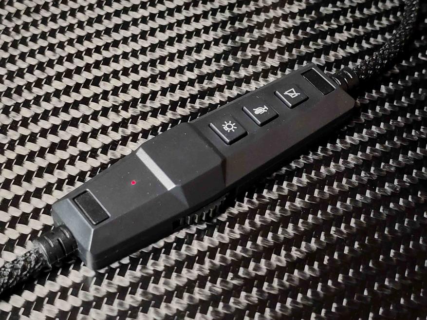 Управление наушниками происходит с пульта на кабеле: можно изменить громкость, выключить звук или микрофон, а также включить или отключить подсветку. Лично мне им пользоваться неудобно, я привык делать это на чашах.