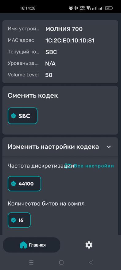 К смартфону подключение происходит почти мгновенно. Определяется аудиокодек SBC.