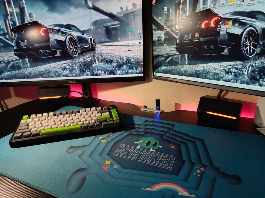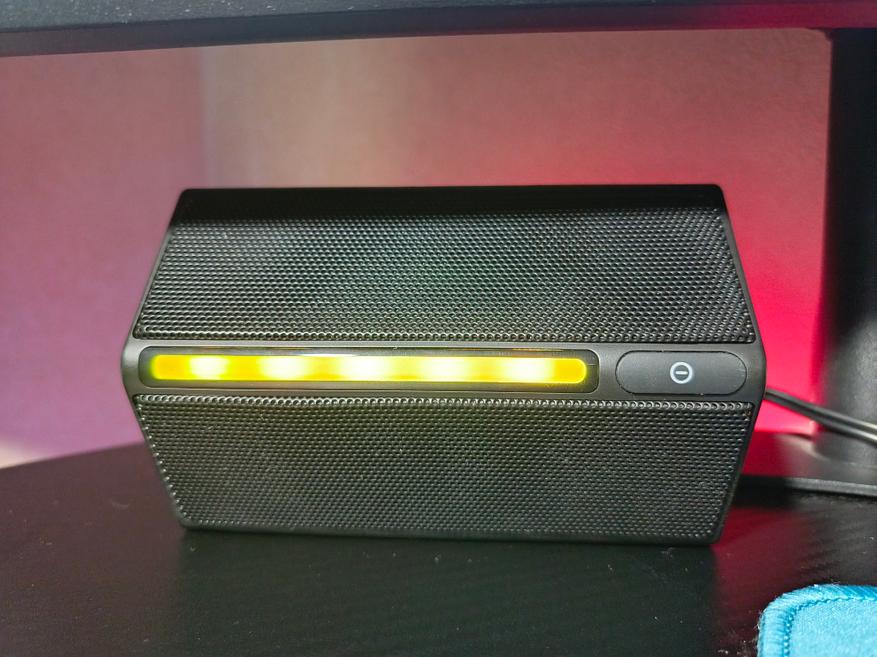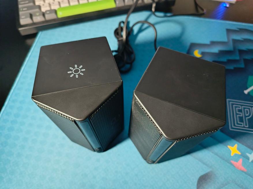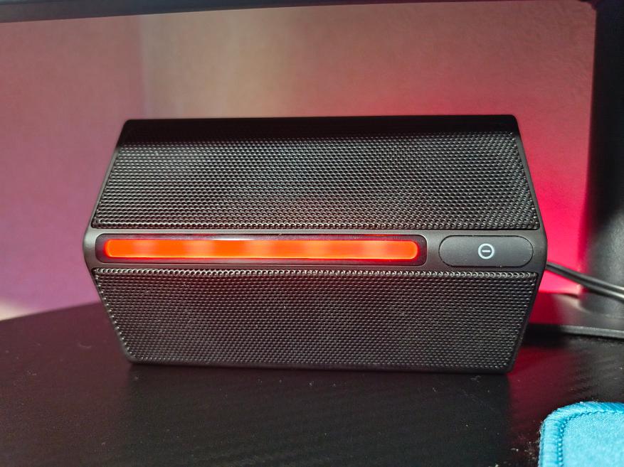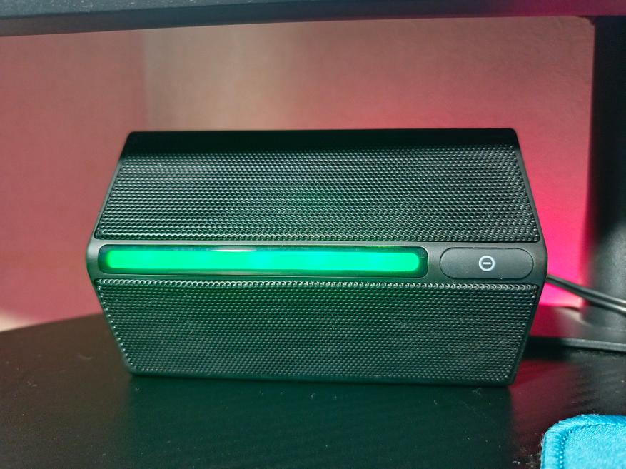 RGB-подсветка дополняет внешний вид колонок и вашего рабочего места. Стандартный набор цветов и пару режимов работы. При желании подсветку можно выключить путем длительного удержания сенсорной кнопки. Обратно включается подсветка кратковременным нажатием.
