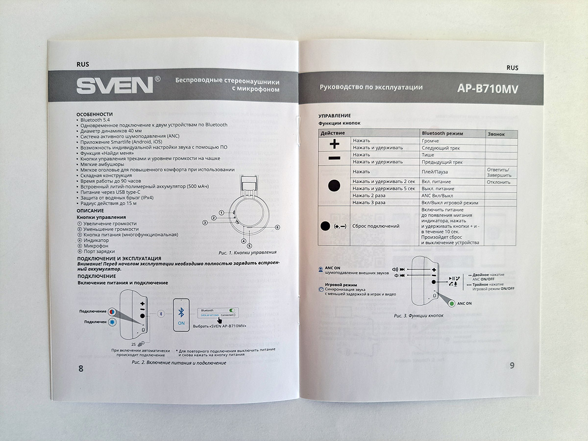 Руководство достаточно подробное, с цветными картинками. Тут есть действительно полезная информация, например, как при помощи многофункциональной кнопки включить шумоподавление или выбрать Игровой режим.