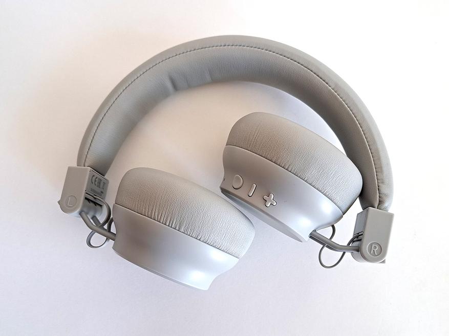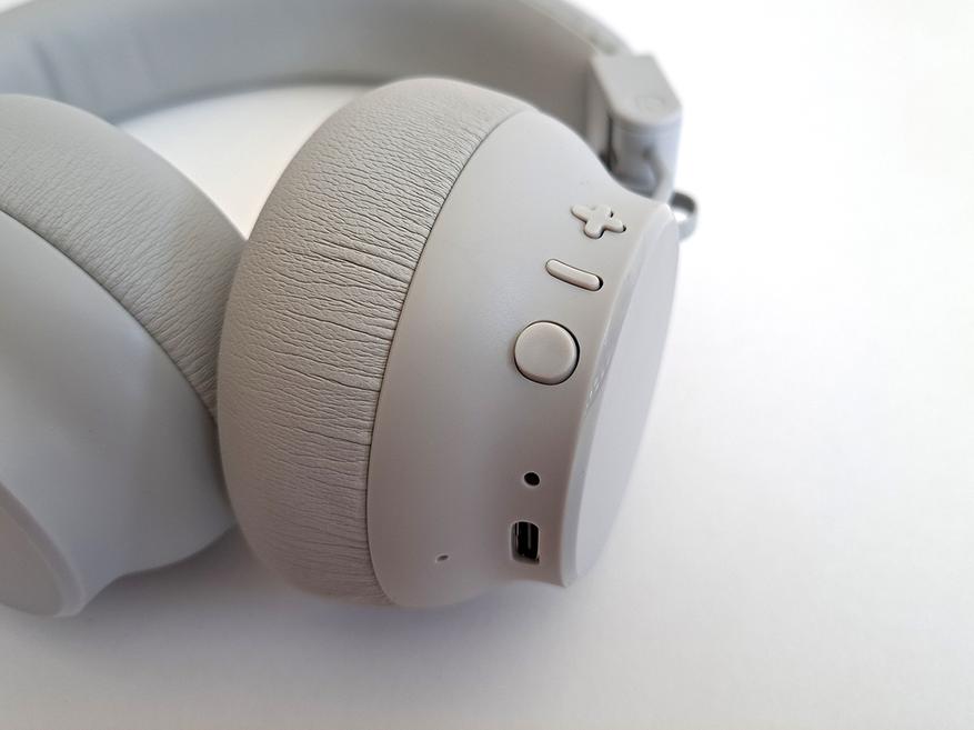На правой чашке расположены органы управления: многофункциональная кнопка, «+» и «-» для регулировки громкости и переключения треков, а также разъем USB type С, светодиодный индикатор и отверстие микрофона. Кнопки объемные, фигурные, хорошо определяются на ощупь, где какая.