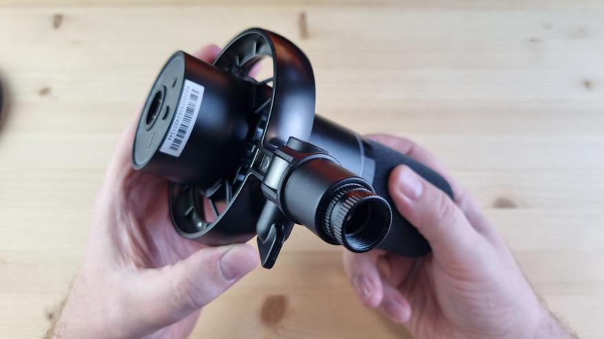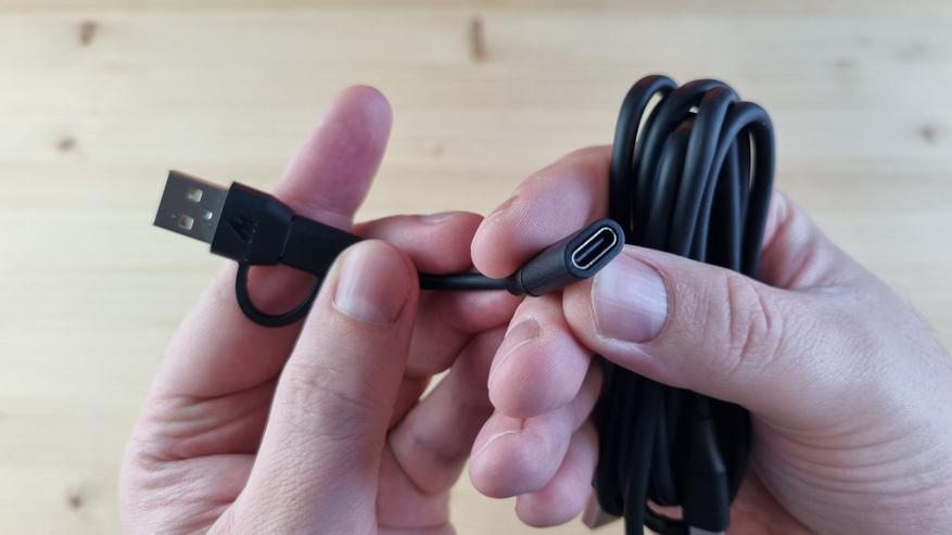 Внутри была документация, два резиновых кольца, короткий перехоник с Type C на совмещенный USB, аналогичный, только папа-папа, длинный USB кабель, беспроводной приёмник и тяжелая выдвижная подставка на стол. К ней у меня, кстати, есть претензия — слишком уж она высокая.