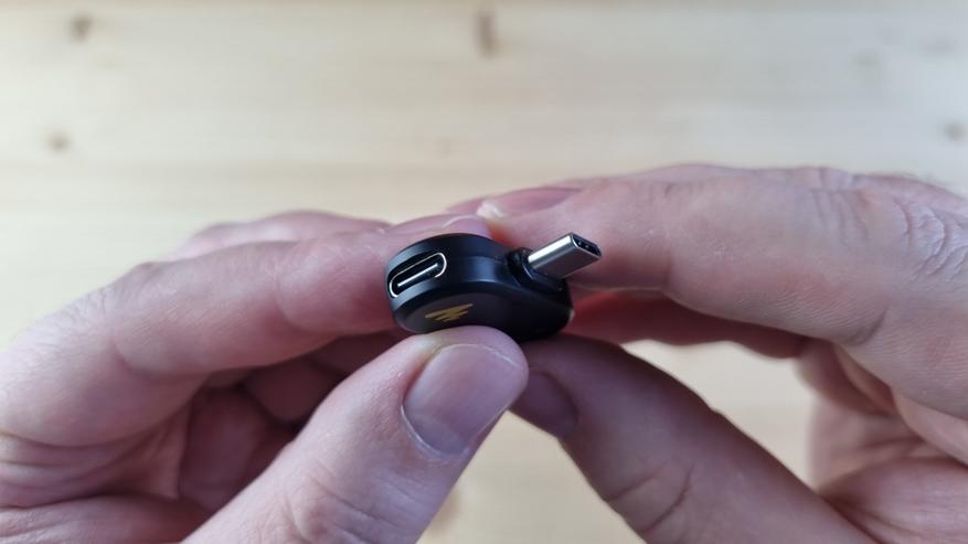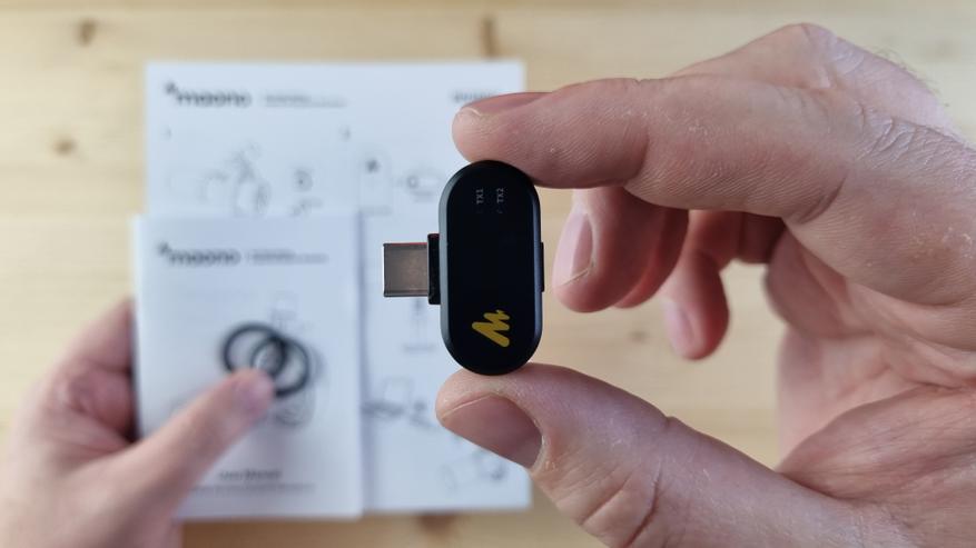 На приёмнике видим дополнительный Type C порт для совместимости, два индикаторных светодиода, то есть микрофона может быть два, и кнопку шумоподавления.