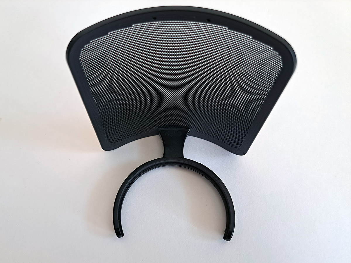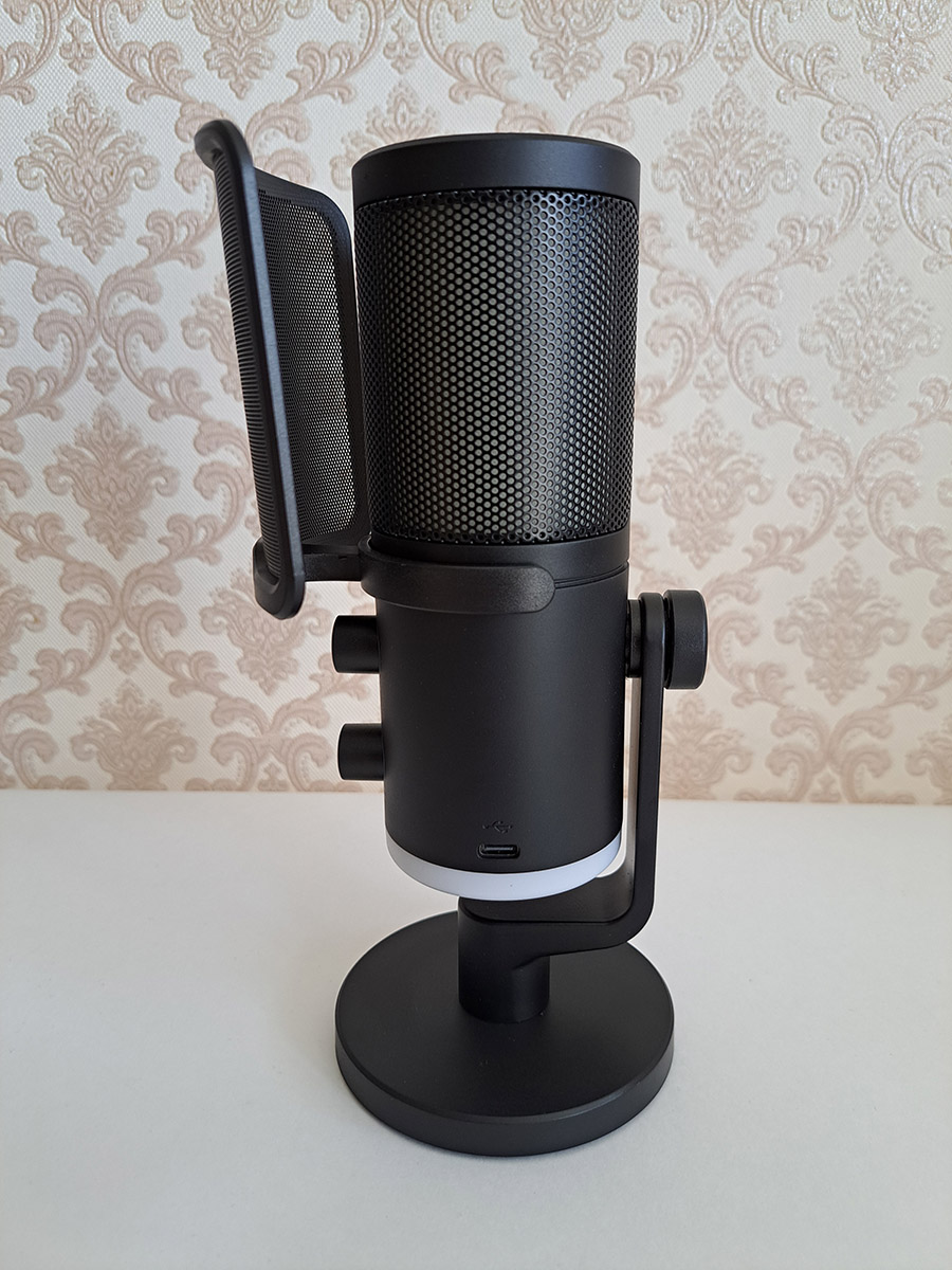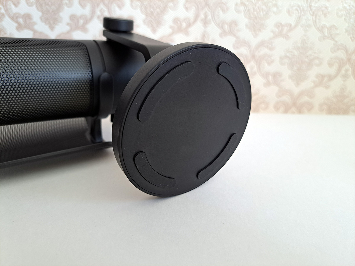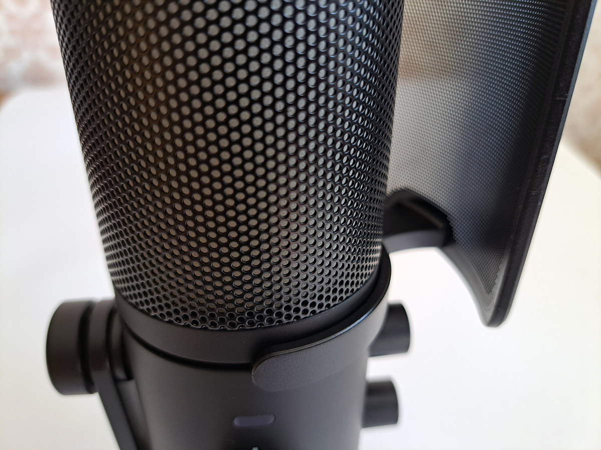 Поп-фильтр, сглаживающий звучание некоторых звуков, можно при желании снять. Он фиксируется на желобе дугообразным зажимом.