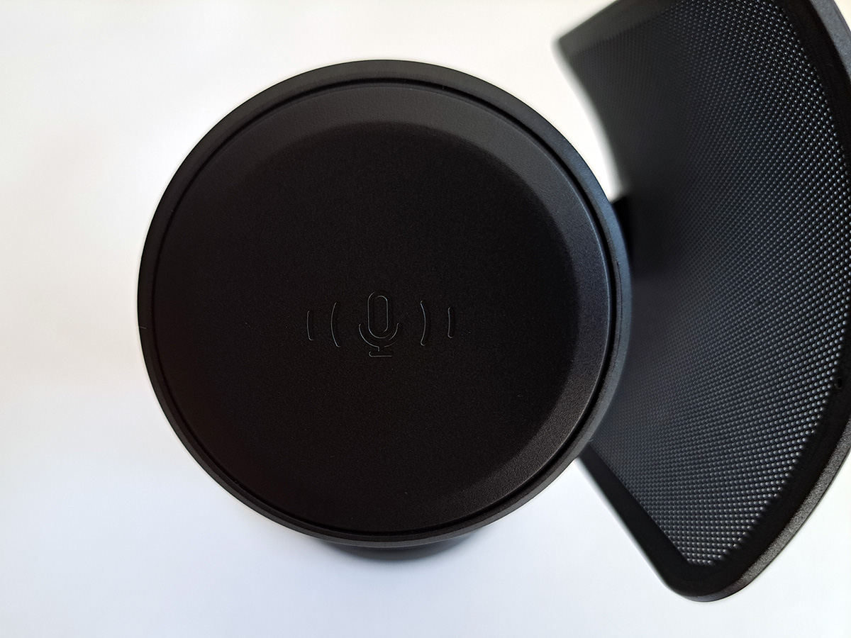 Вот так выглядит решетка микрофона вблизи, под ней мы видим слой поролона.