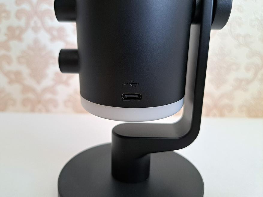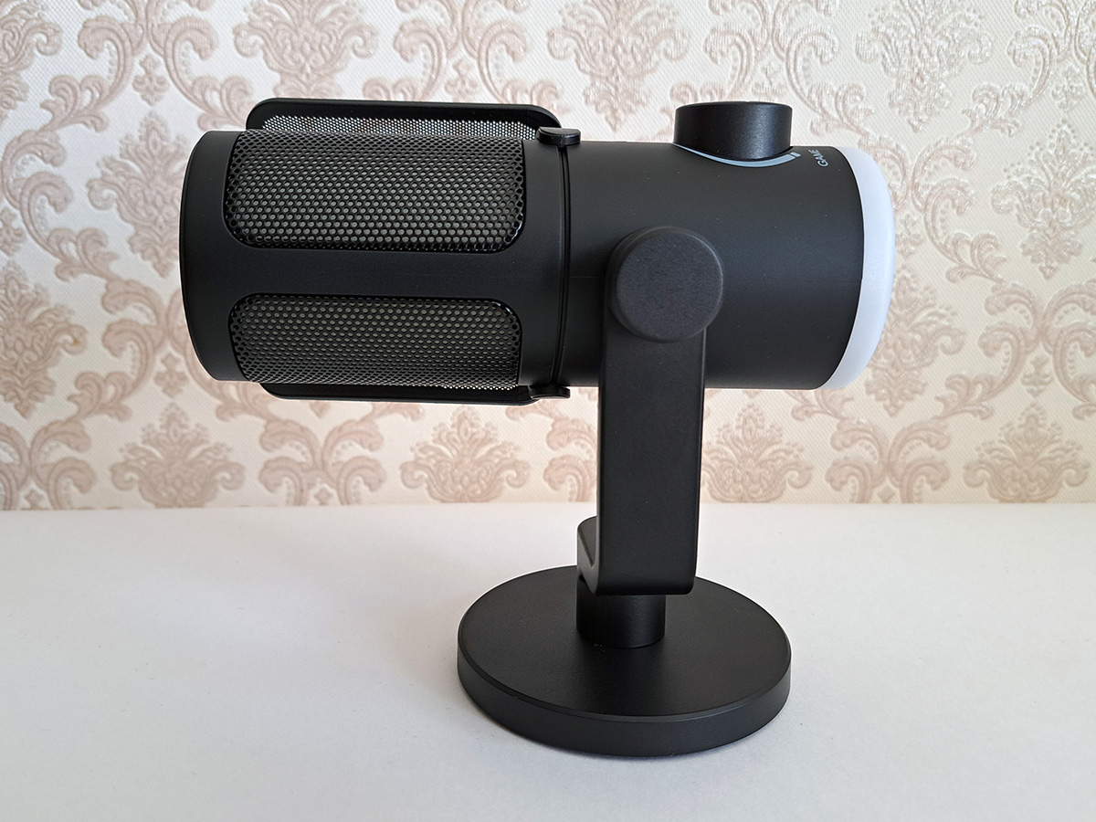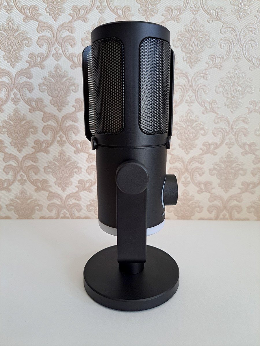 Микрофон может легко наклоняться на подставке, и это хорошо, так как на нижнем торце есть разъемы и элементы управления, и туда периодически приходится заглядывать.