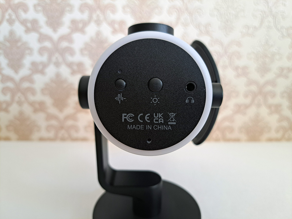 На дне микрофона мы можем увидеть кнопку активизации функции шумоподавления, кнопку включения подсветки и выбора ее режимов, а также разъем mini jack 3.5 мм для подключения наушников.