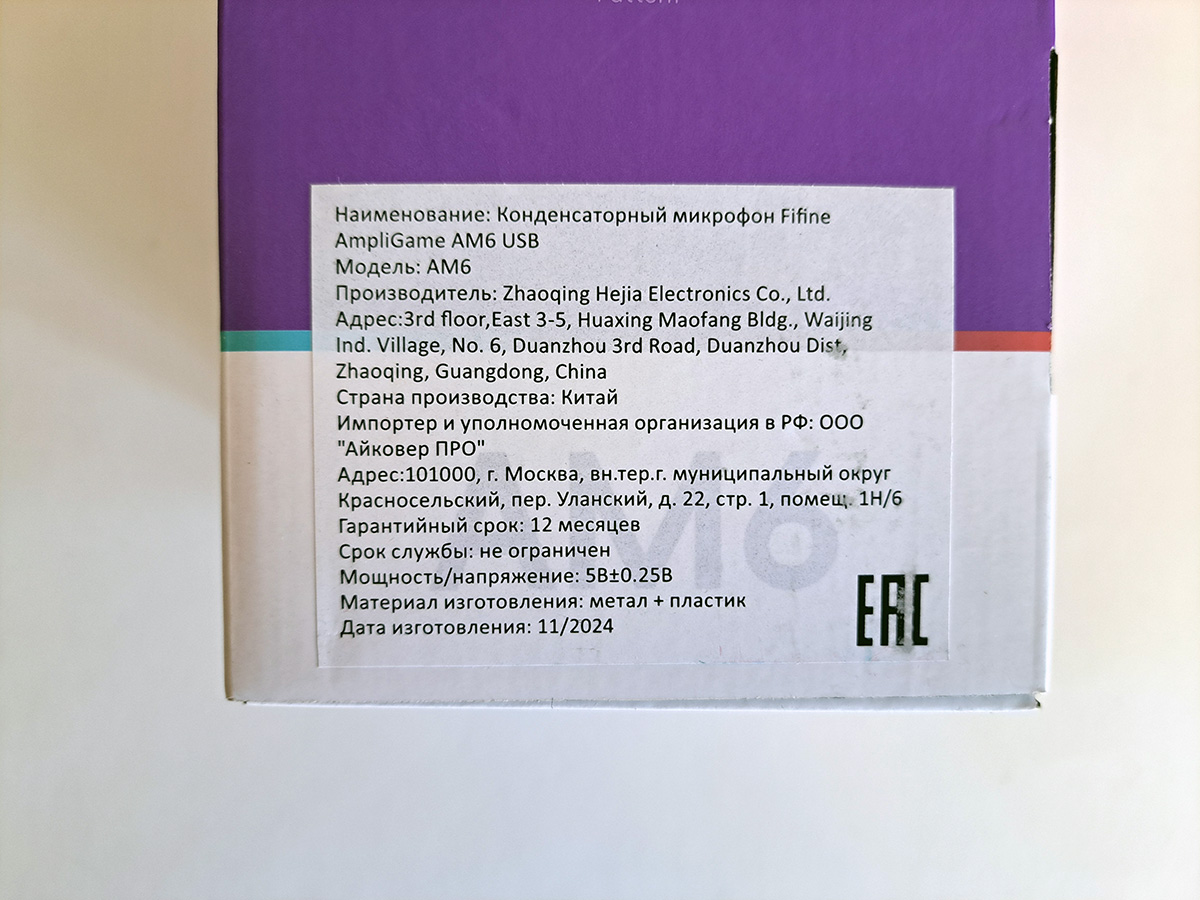 Микрофон я приобрел на Озон. В этот раз повезло, и красочную коробку не «украсили» логистическими наклейками. Только оставили мётку маркером.