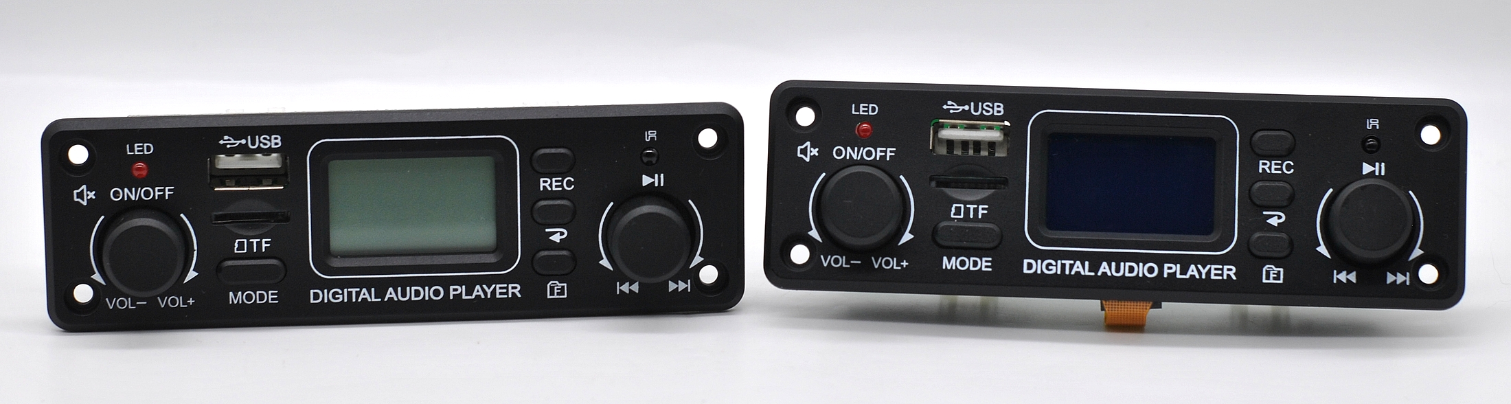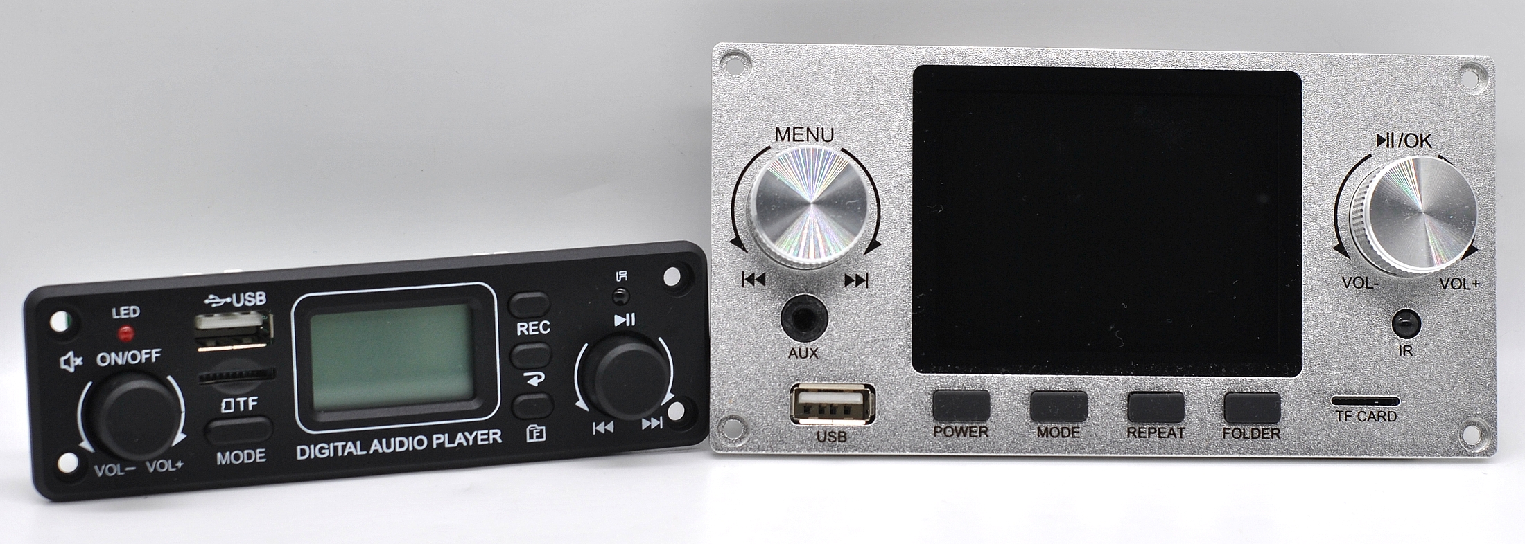 А кто хочет более представительного и «богатого» внешнего вида, вот сравнение с модулем с выходом I2S и алюминиевой панелью.