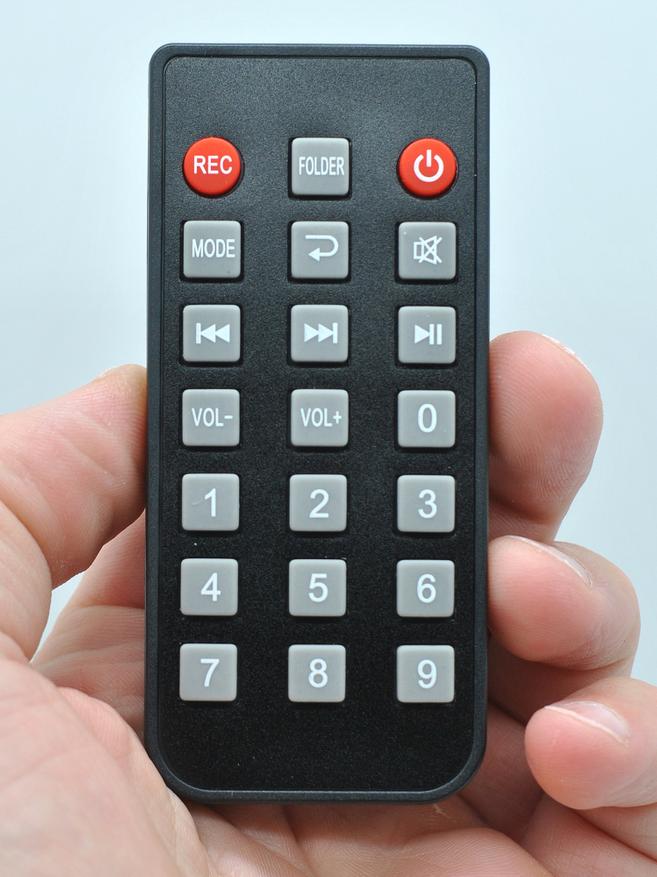 Пульт размерами 9х4х1,2 см сразу с батарейкой, доступ ко всем функциям есть, но эргономика слабая: