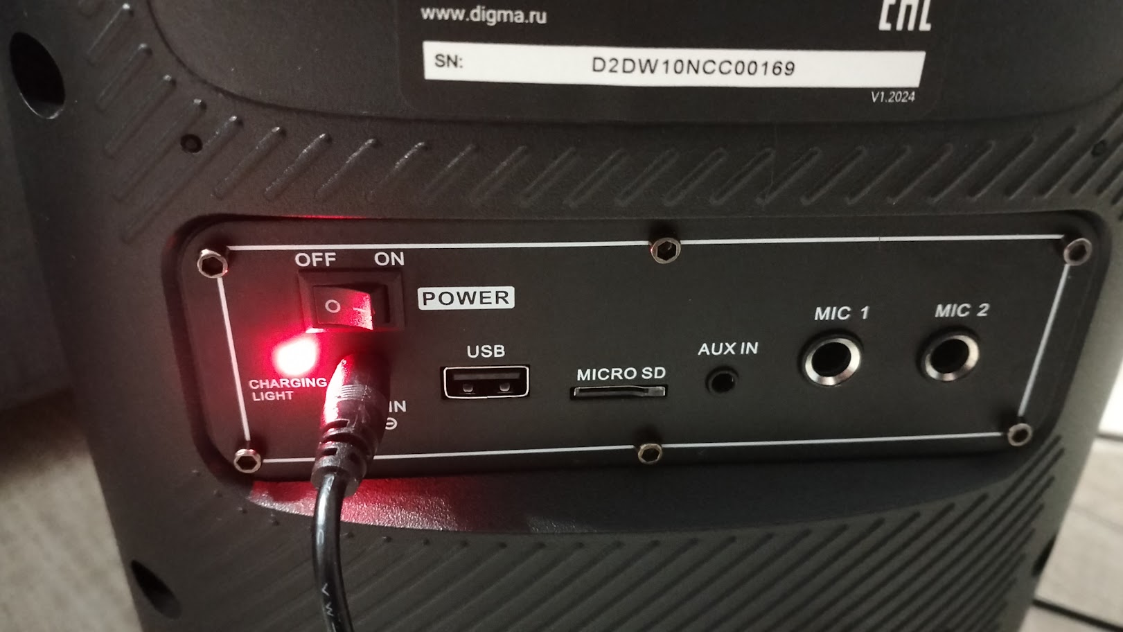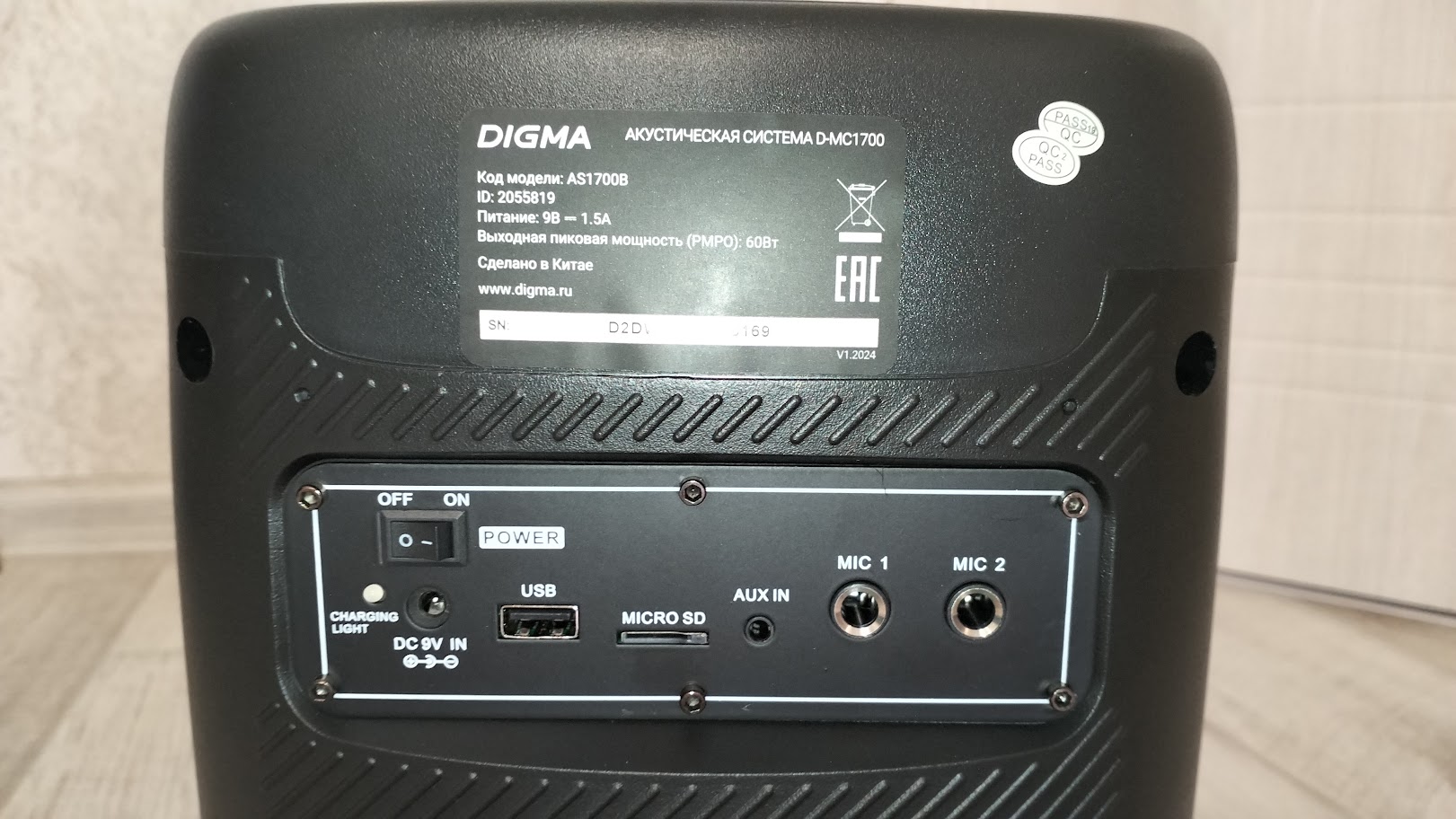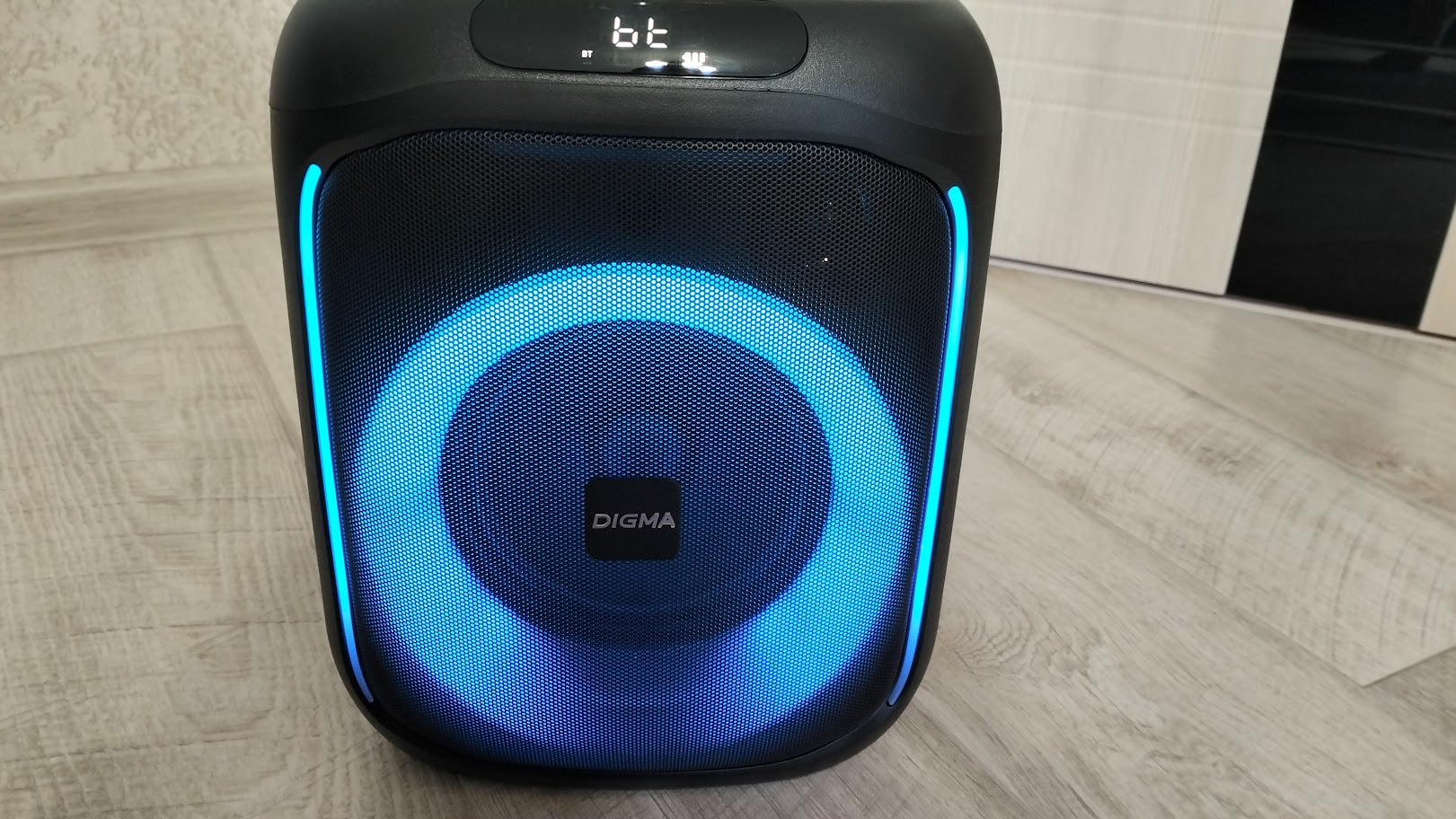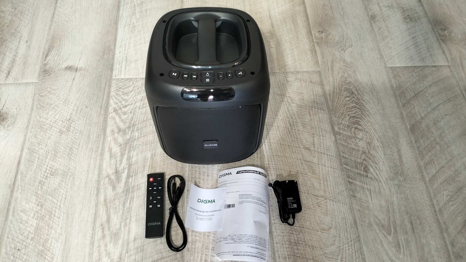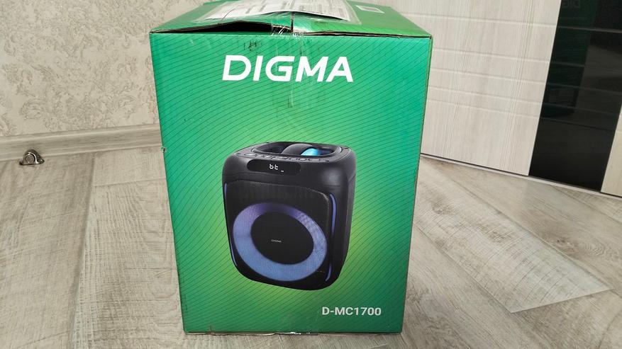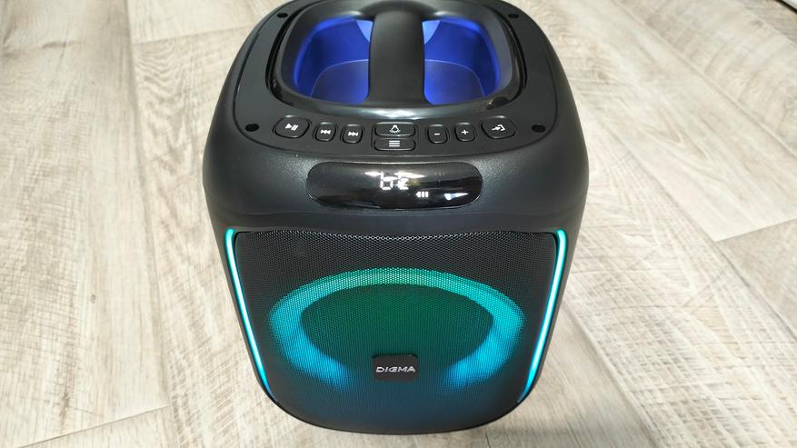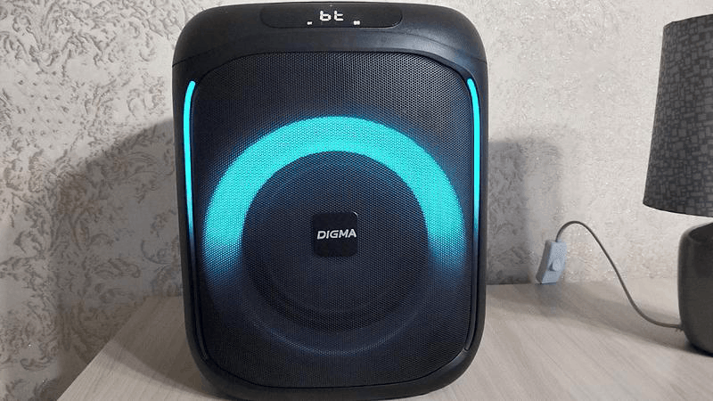 Digma D-MC1700 является вполне хорошей колонкой для проведения вечеринок, этому способствует отличный запас громкости, регулируемая динамическая подсветка, а также возможность подключения сразу двух микрофонов и возможность добавления эффектов для них.
