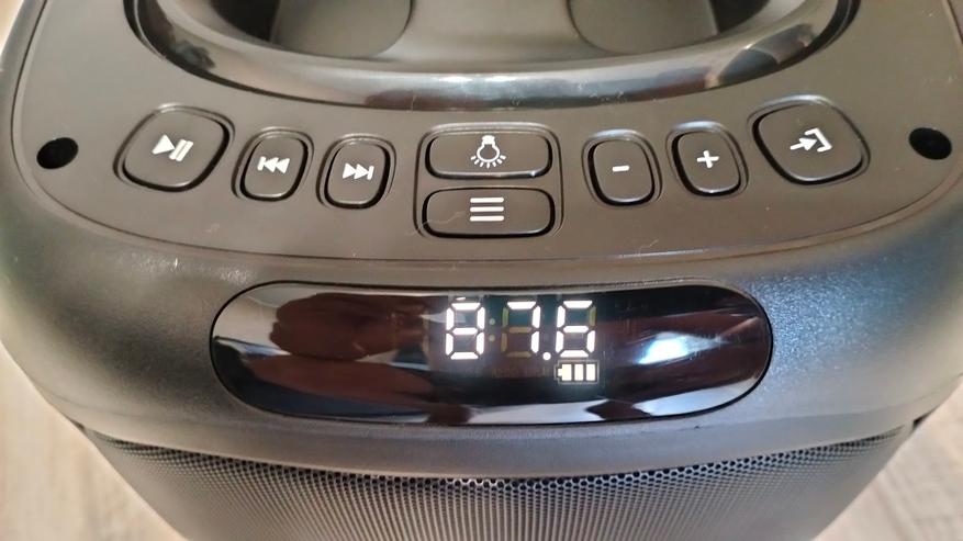 Что касается звука, первым делом хочется отметить уровень громкости, он очень высокий, в квартире на максимум слушать будет невозможно, что говорит о том, что данная колонка легко справится с большим залом. Качество звука среднее, есть и басы и средние и даже высокие, но категорически не хватает эквалайзера для более тонкой настройки. Эта модель вполне подойдет для простых вечеринок. Радио работает, все известные радиостанции находит довольно быстро.
